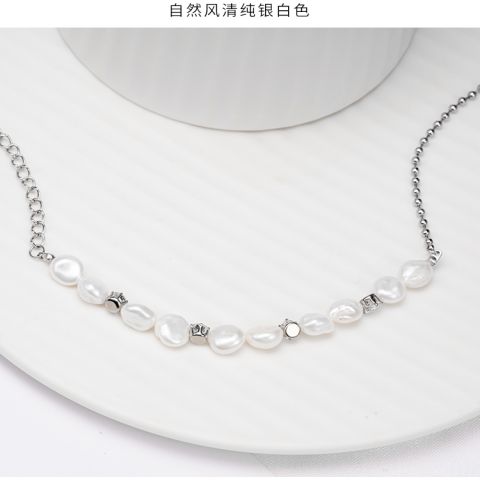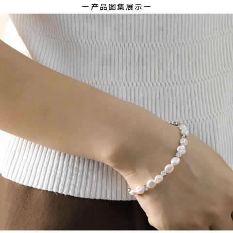 "银色自然风不规则珍珠手链"