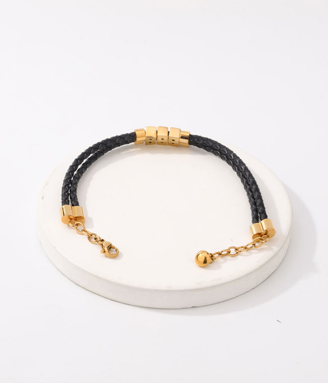 双层细编织黑色皮革不锈钢真皮手镯饰品加工