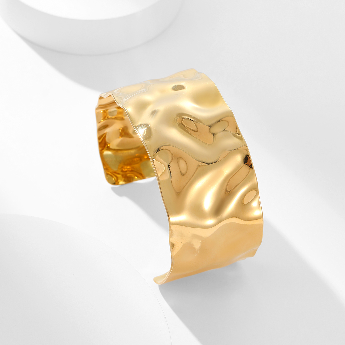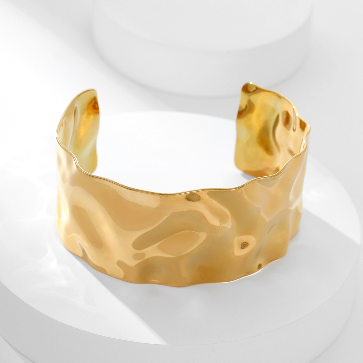 "夸张不锈钢18K镀金锤纹宽手镯"