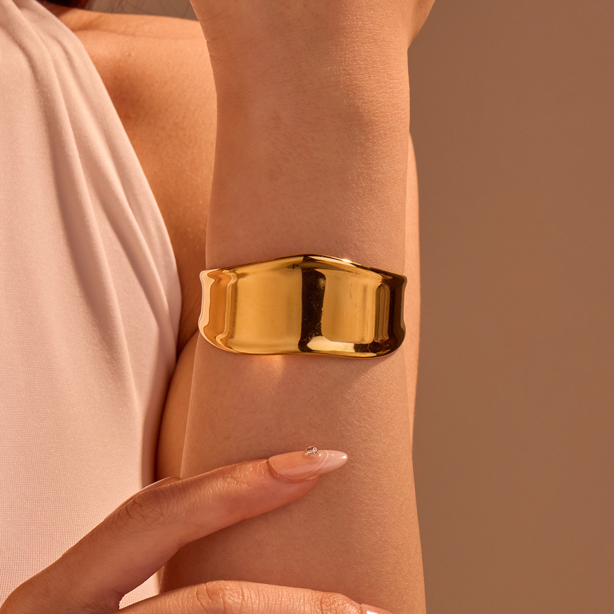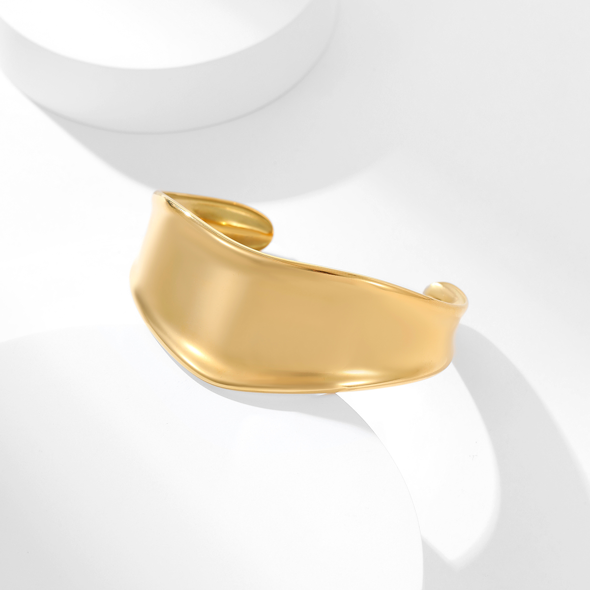 "时尚经典款18K镀金不锈钢粗款开口手镯"