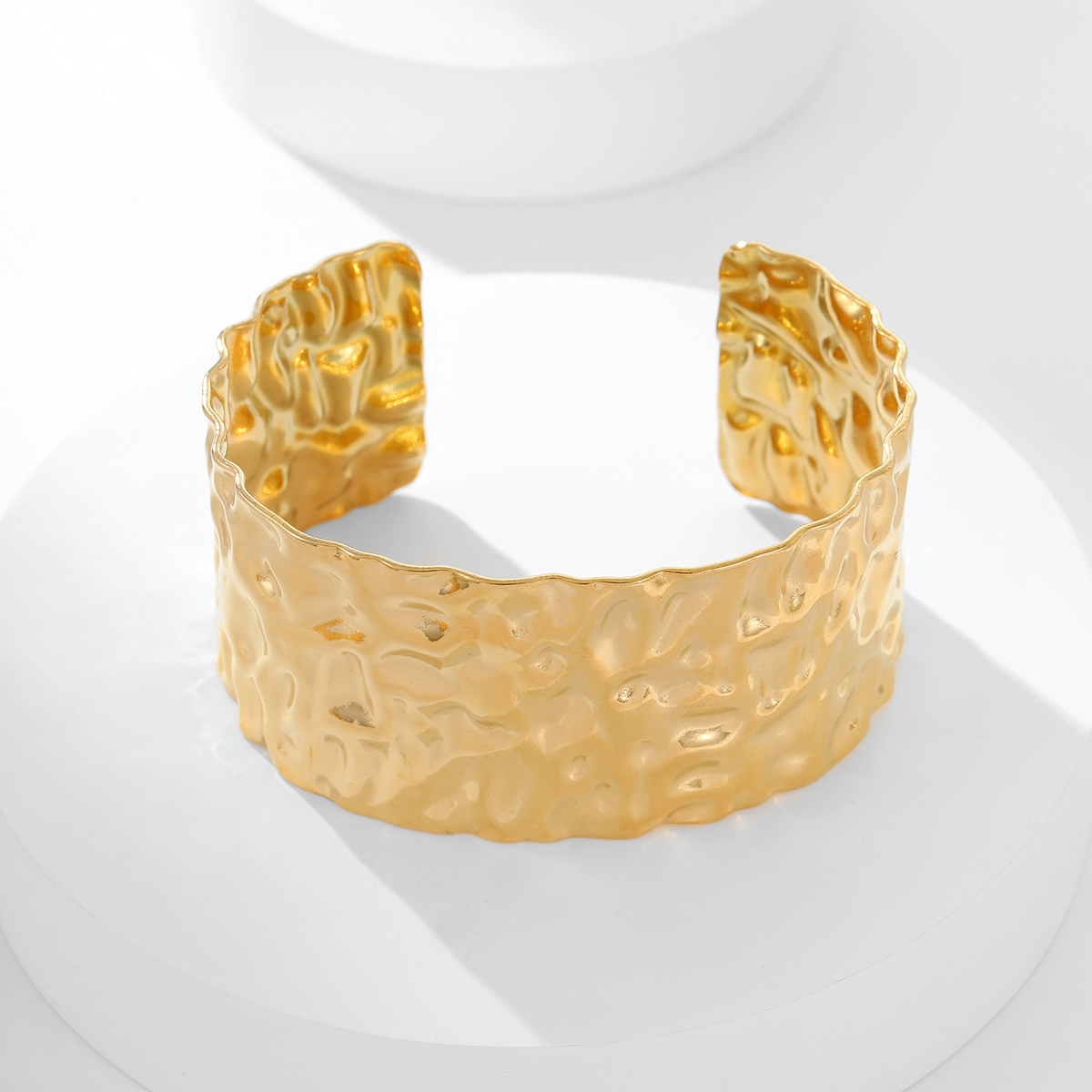 "个性化锤纹宽边熔岩开口手镯男女款"