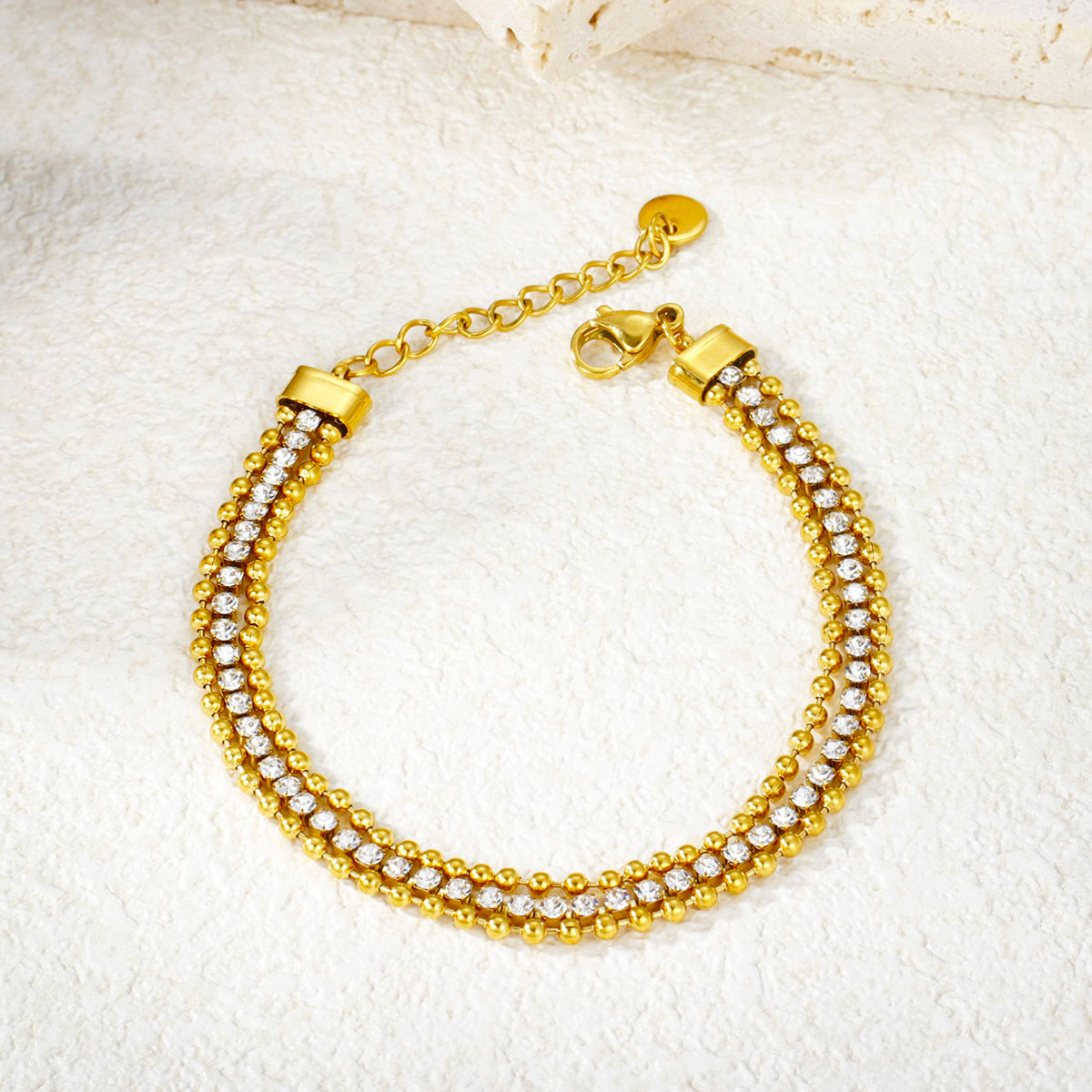 "水晶镶嵌首饰 18K PVD镀金不规则纹理防水手镯"