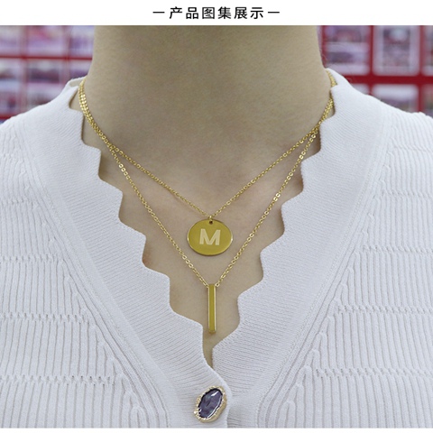 镀金项链批发几何体块坠字母项链