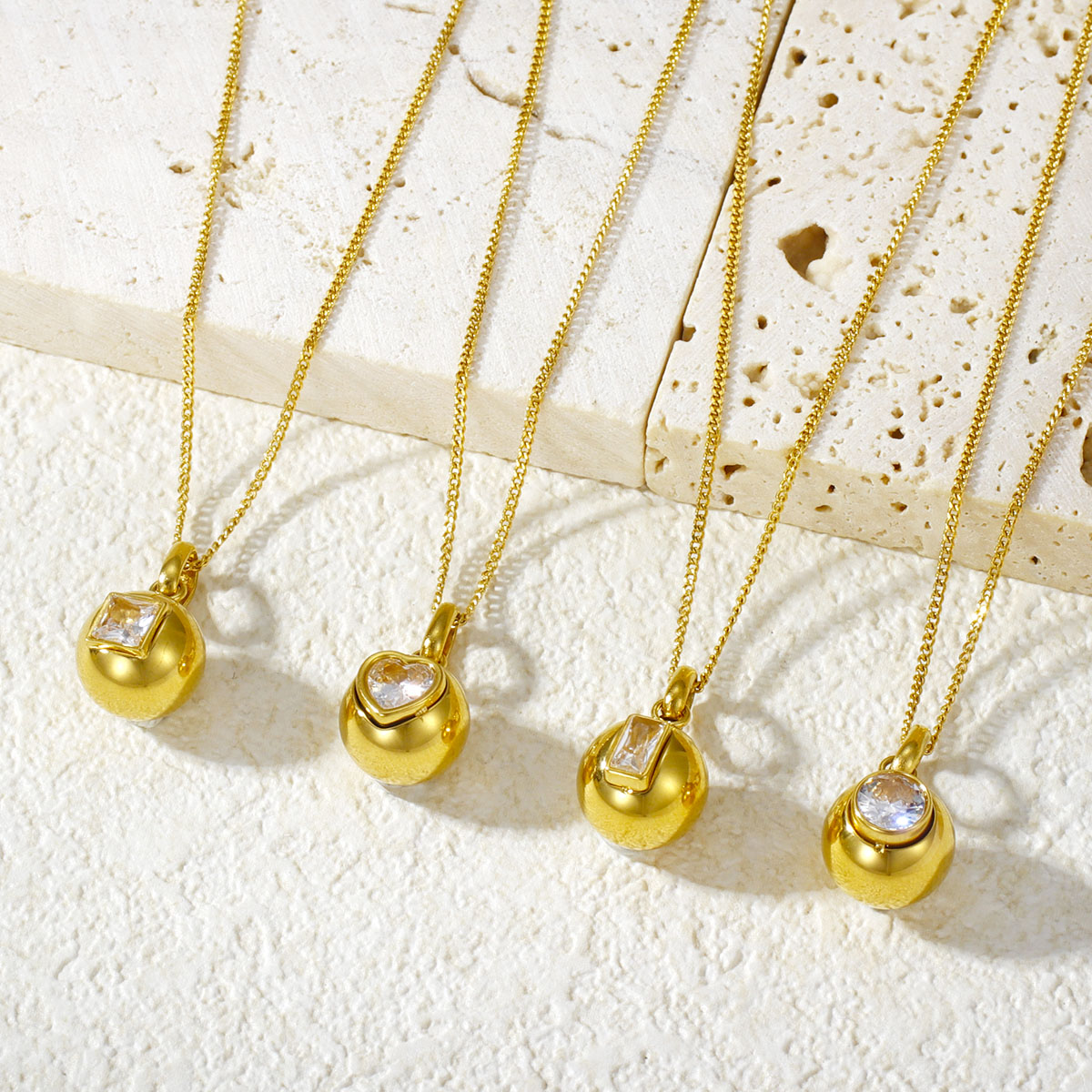 "18K镀金不锈钢彩色方形心形锆石圆形球形吊坠项"