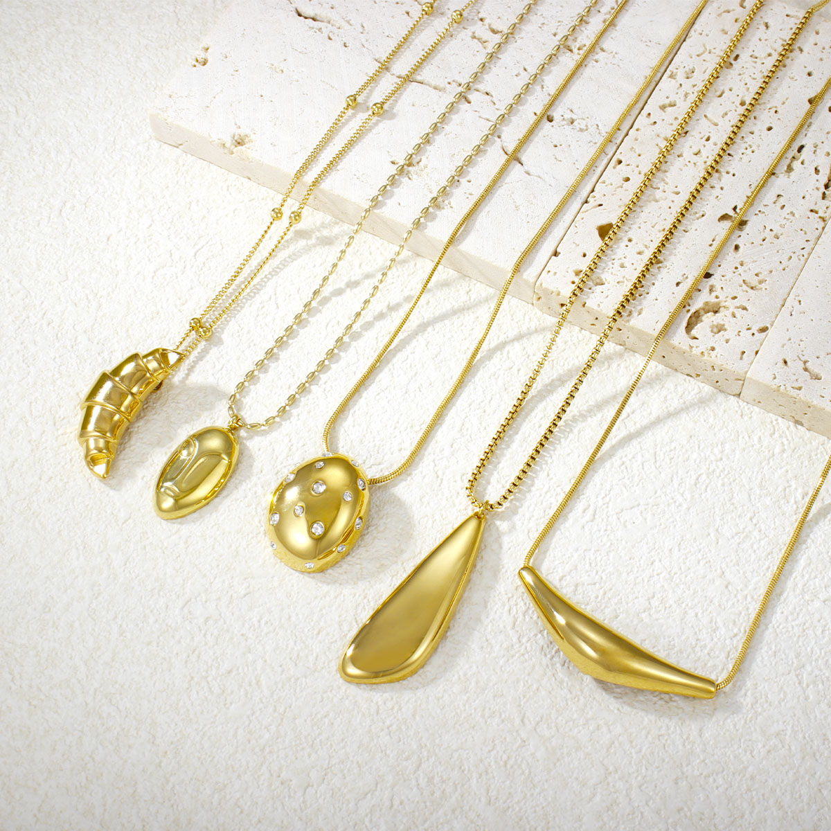 极简几何椭圆珠首饰套装项链不锈钢双层项链