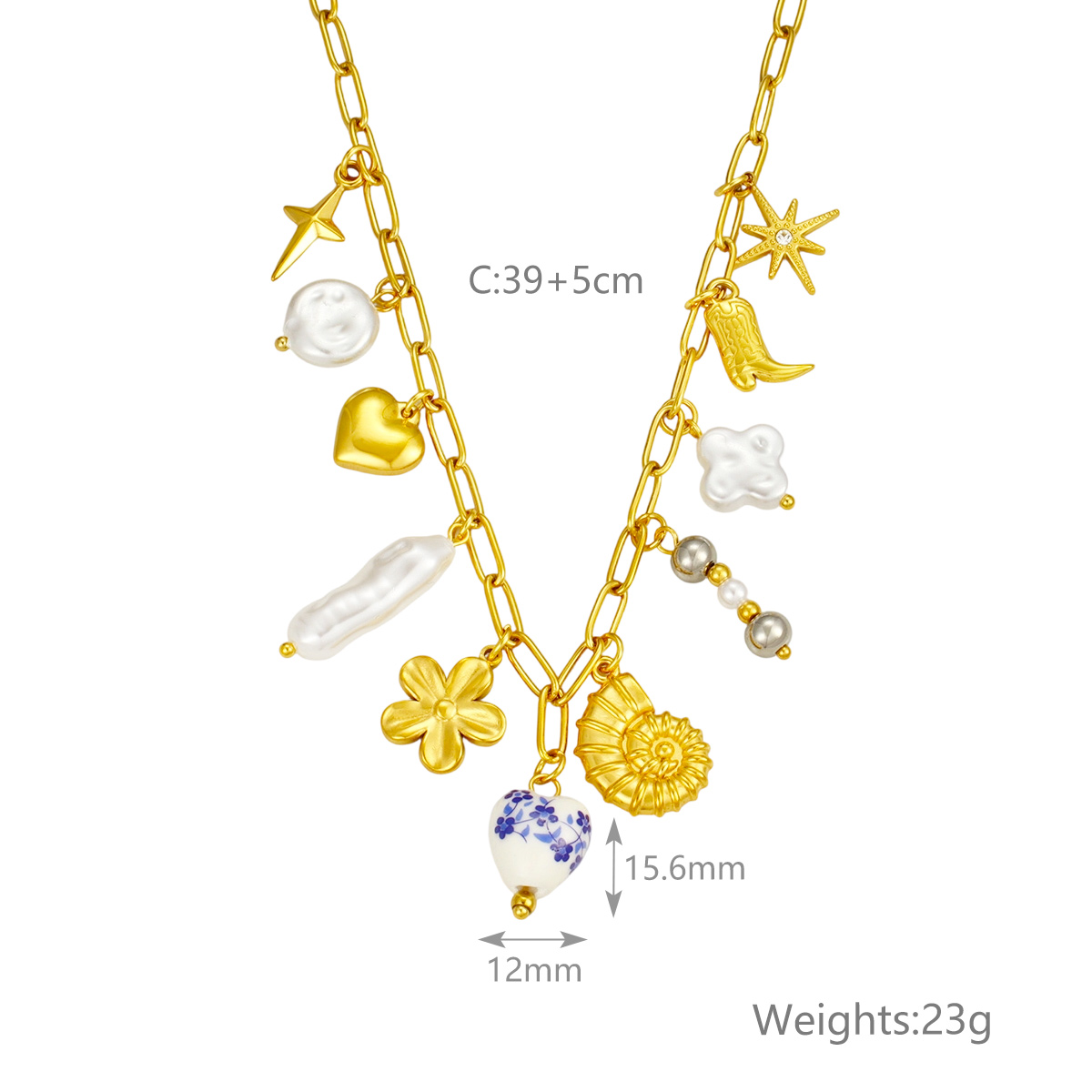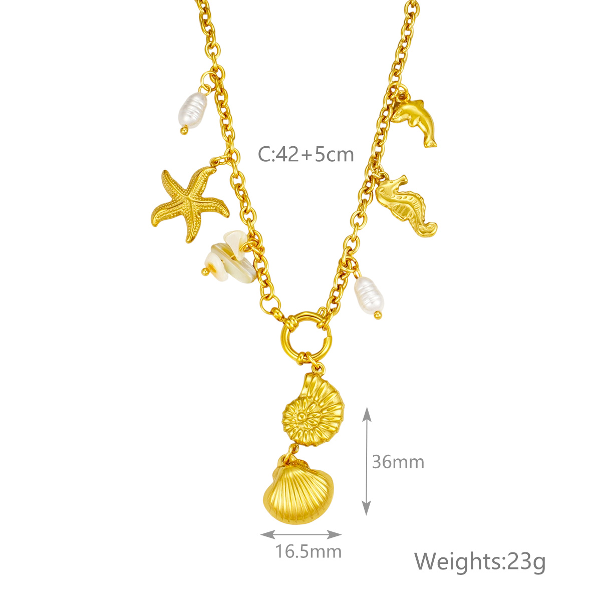 时尚18K镀金不锈钢太阳贝壳陶瓷鱼项链