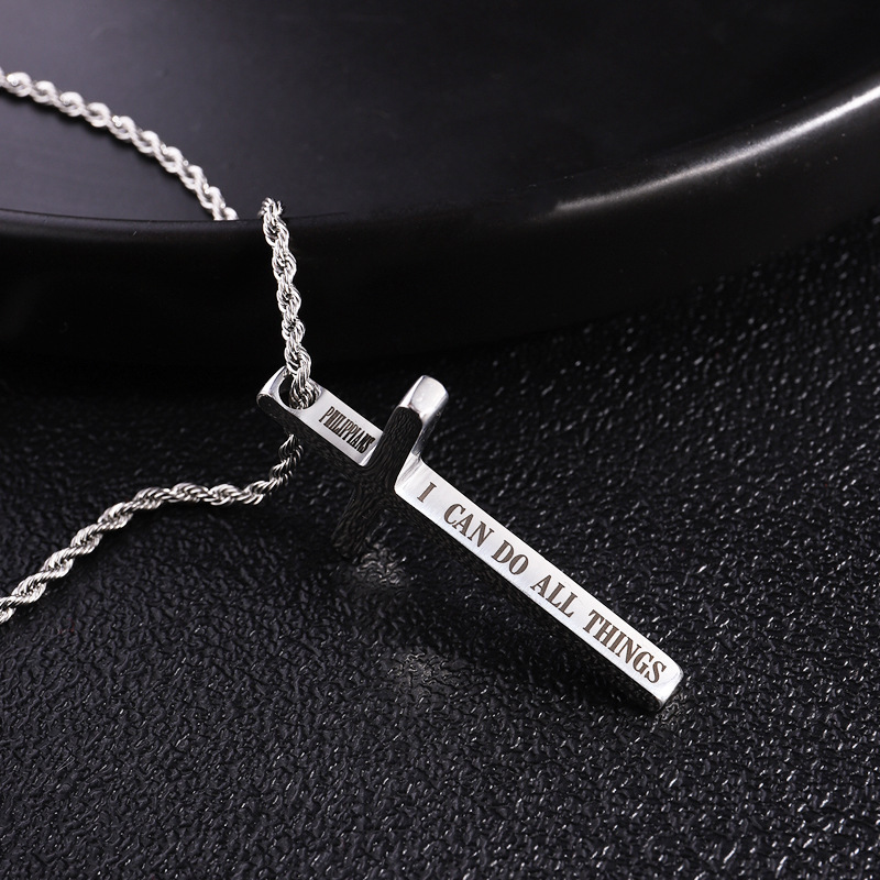简约不锈钢黑色十字架吊坠项链,可刻字