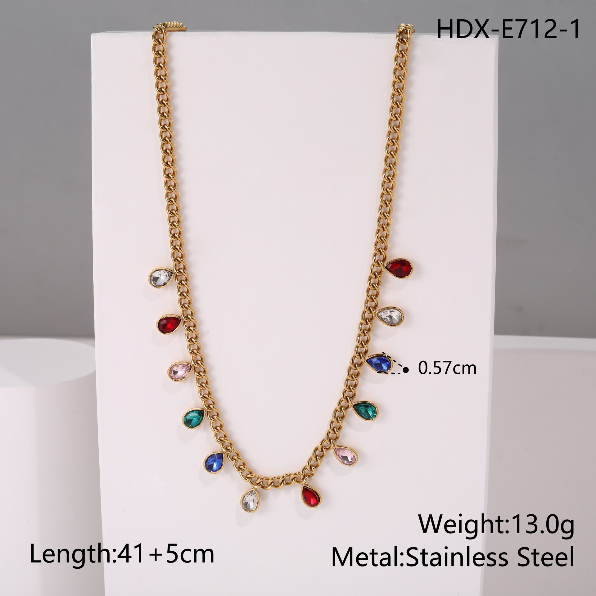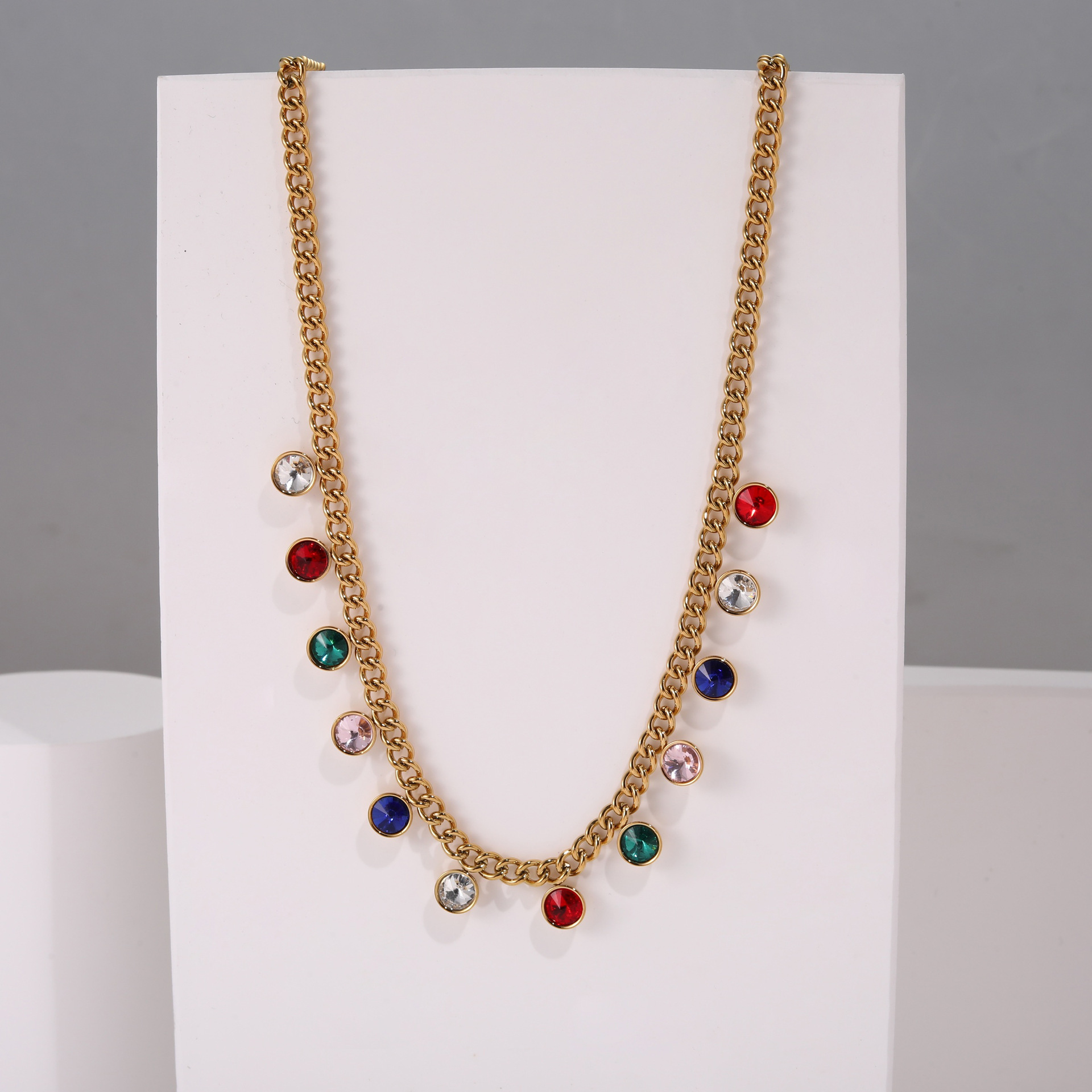 彩色锆石叠戴项链PVD镀18K金不锈钢防褪色项链