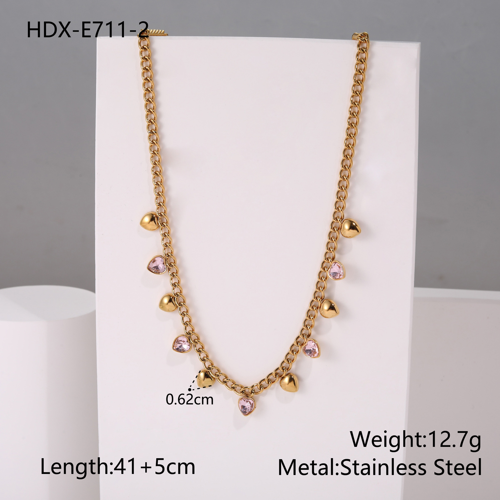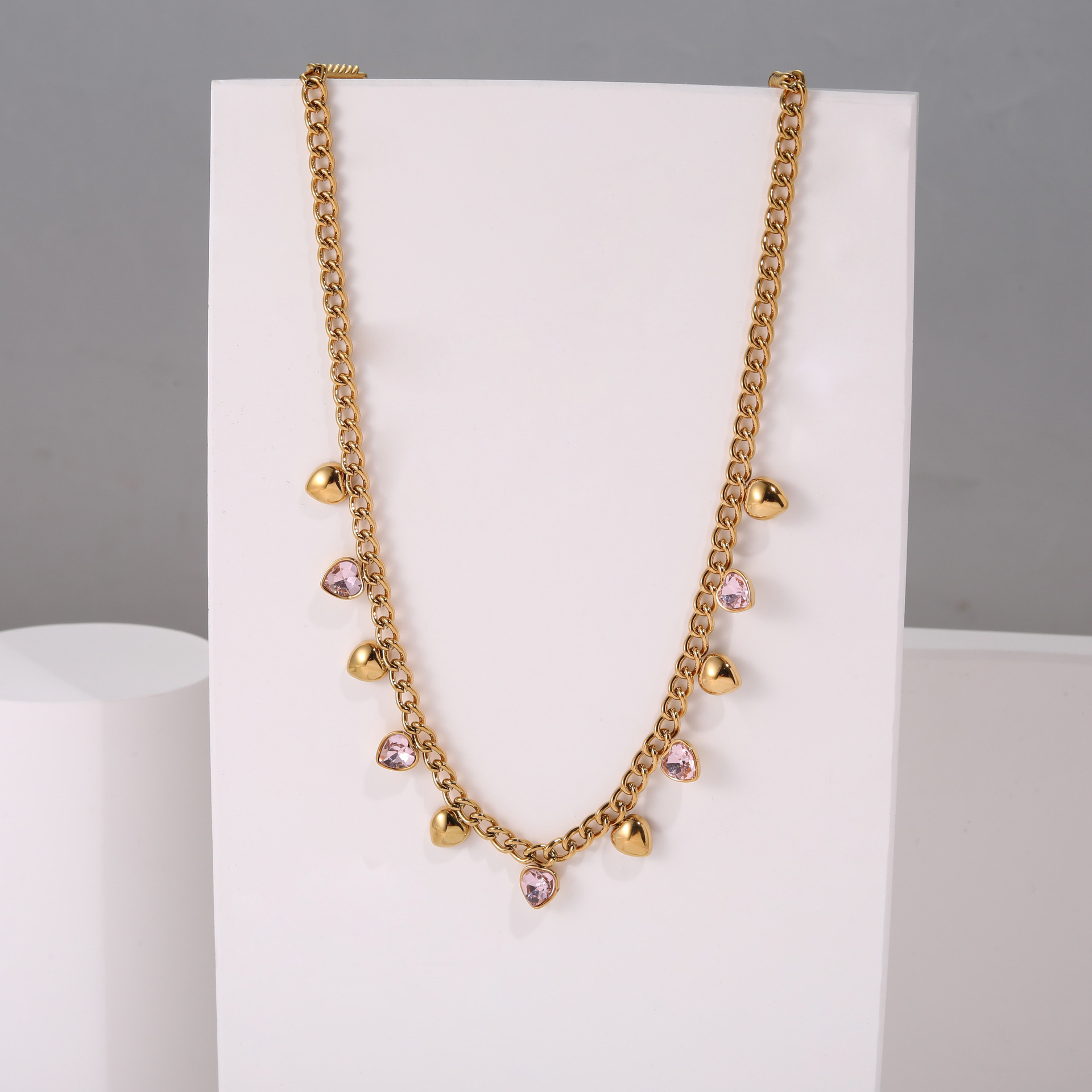 "彩色锆石叠戴项链PVD镀18K金不锈钢防褪色项链"