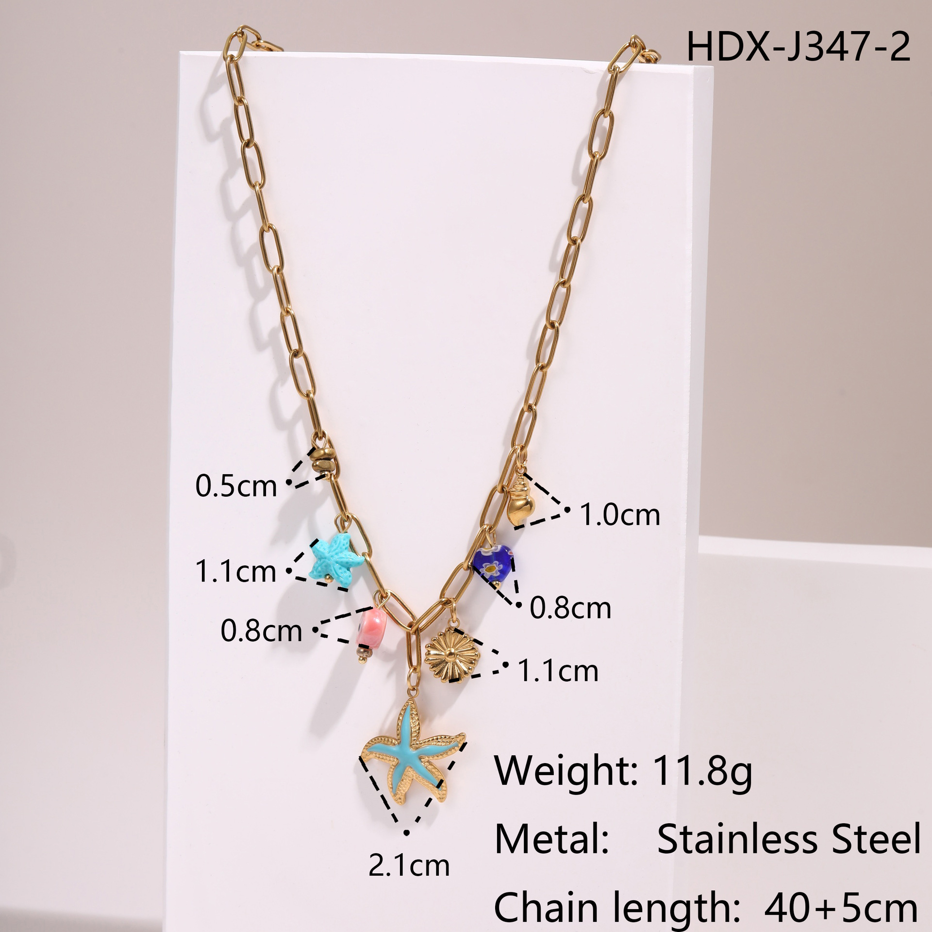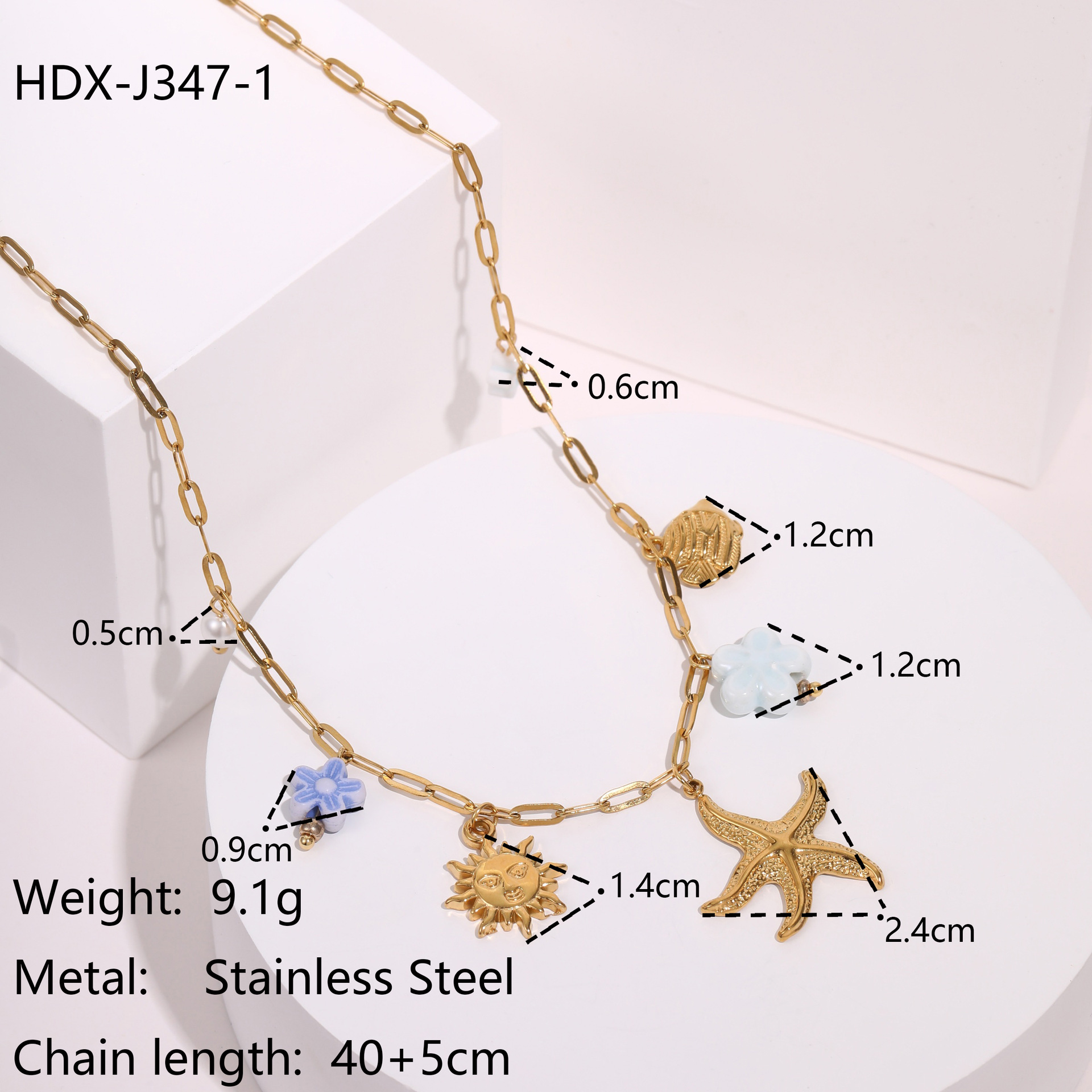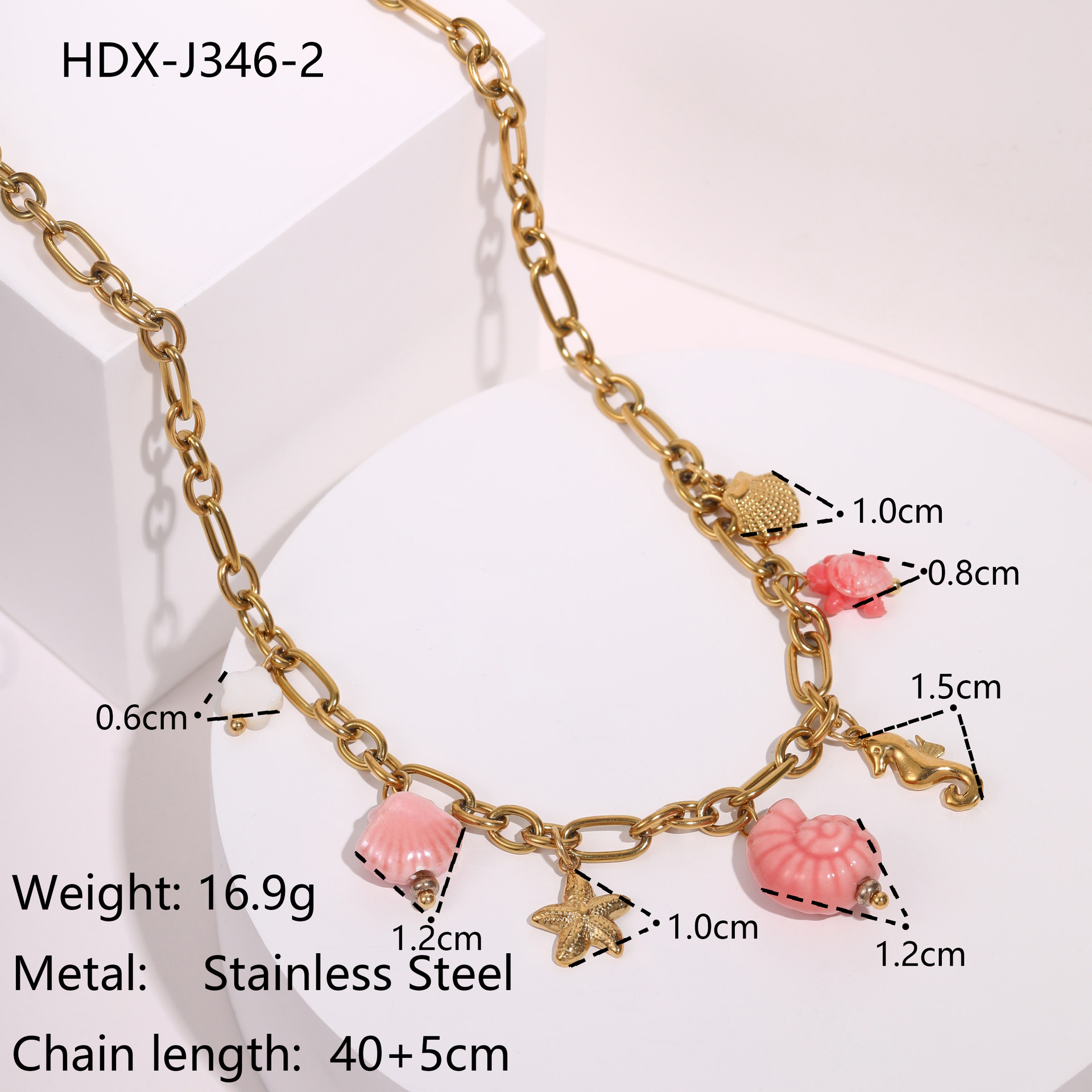 "批发不锈钢18k镀金夏季沙滩贝壳珍珠防水首饰项链"
