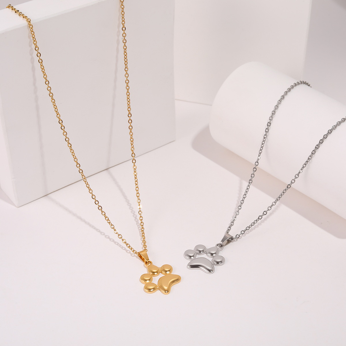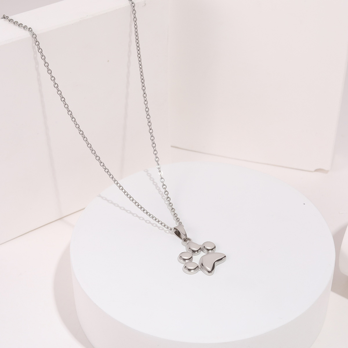 个性化不锈钢可爱宠物名字刻字狗爪印吊坠项链