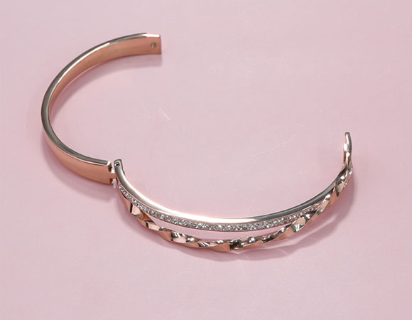 不锈钢不掉色手镯玫瑰金钻石手镯代工