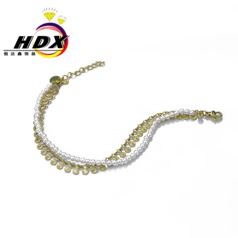 金属手镯批发珍珠与花瓣双层手链