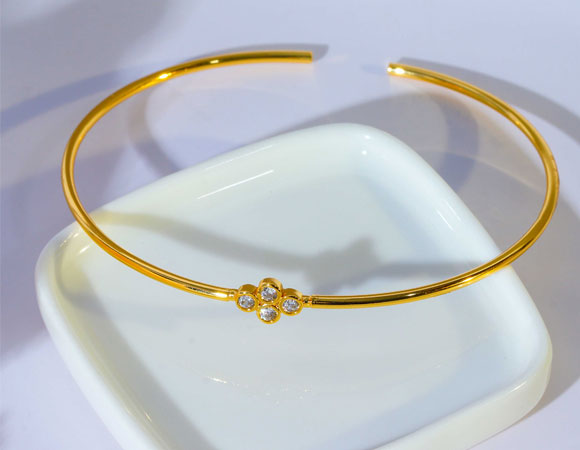 "钢线不锈钢镶锆石细钢丝镀金妇女手镯"