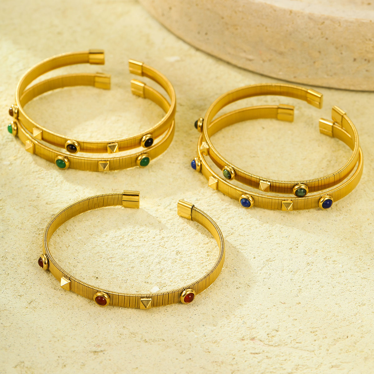"天然石袖口条纹蛇骨弹性手镯"