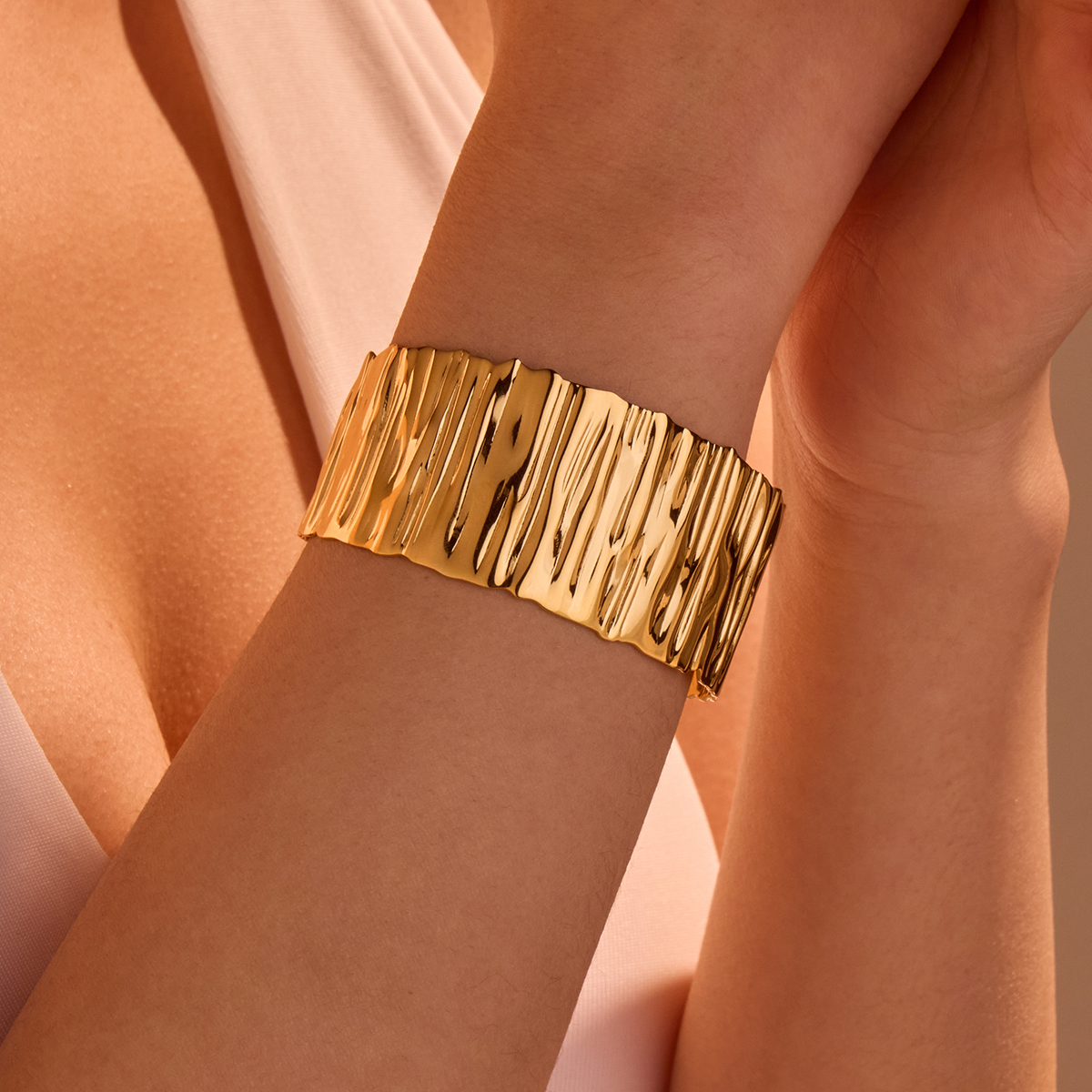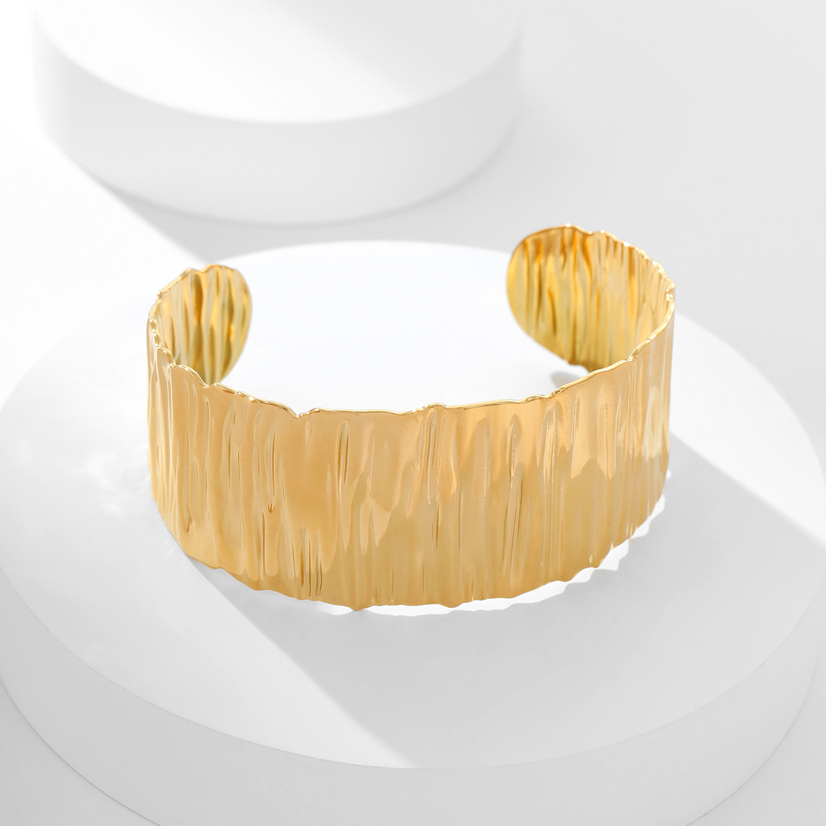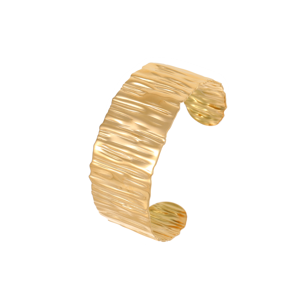 "18K PVD镀金不锈钢复古锤纹手镯"