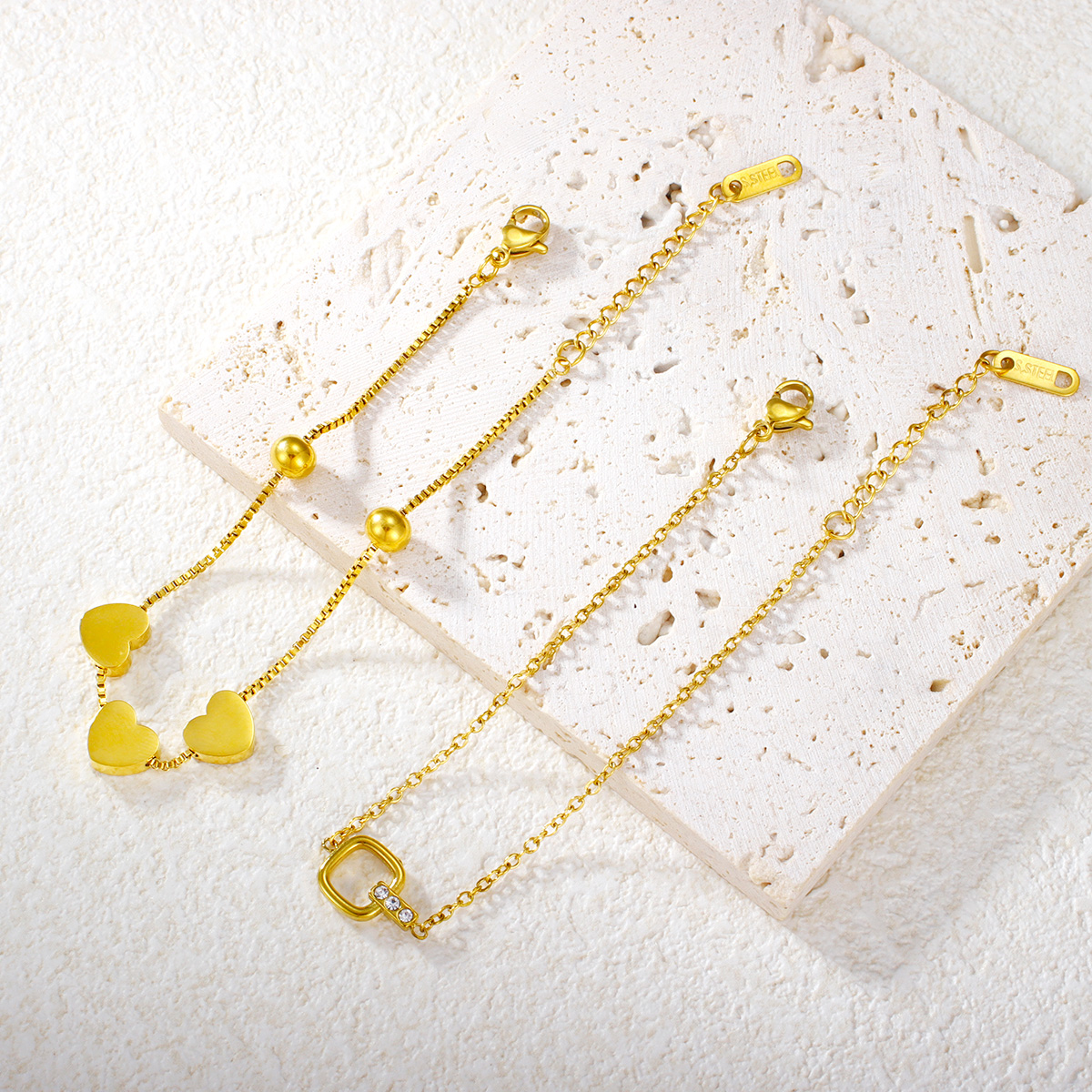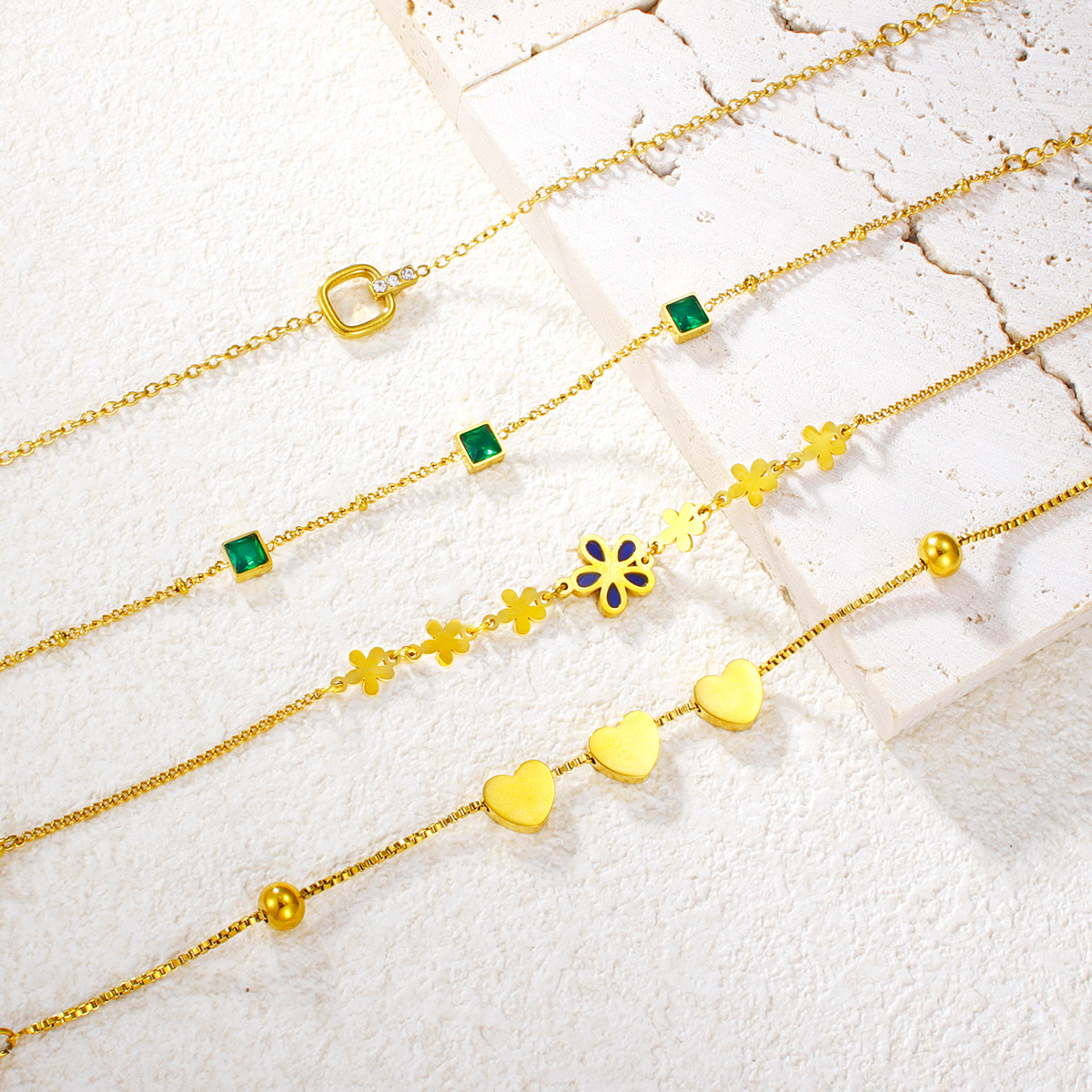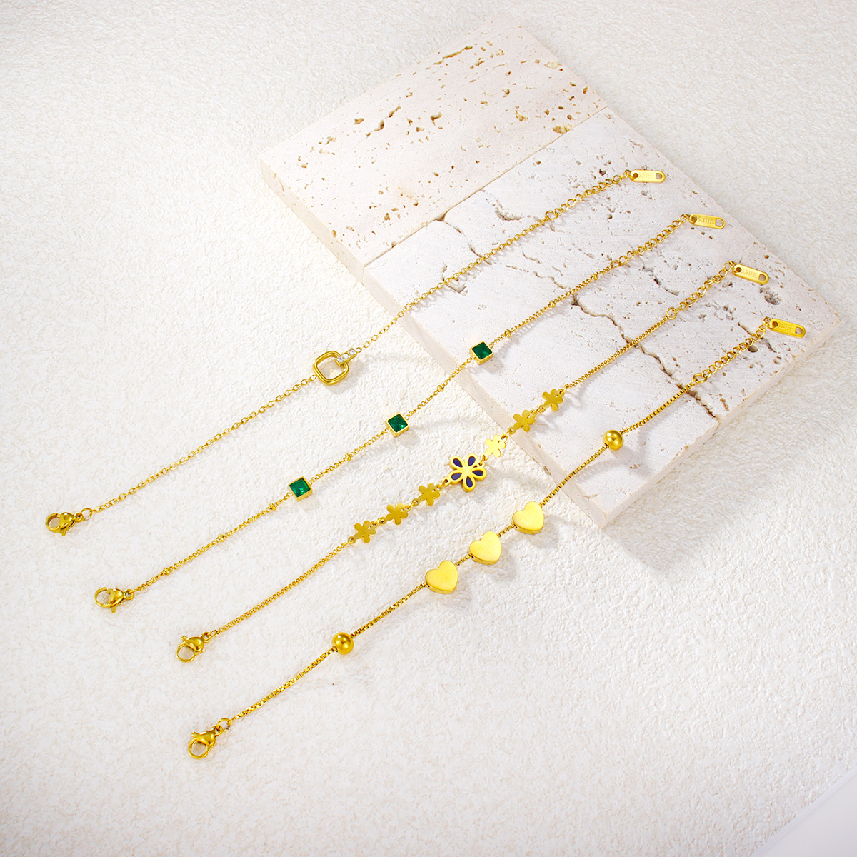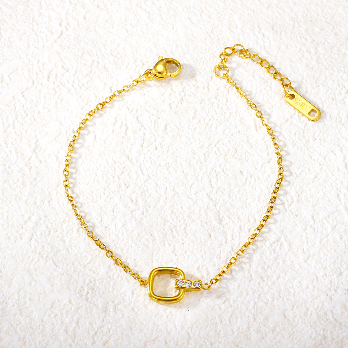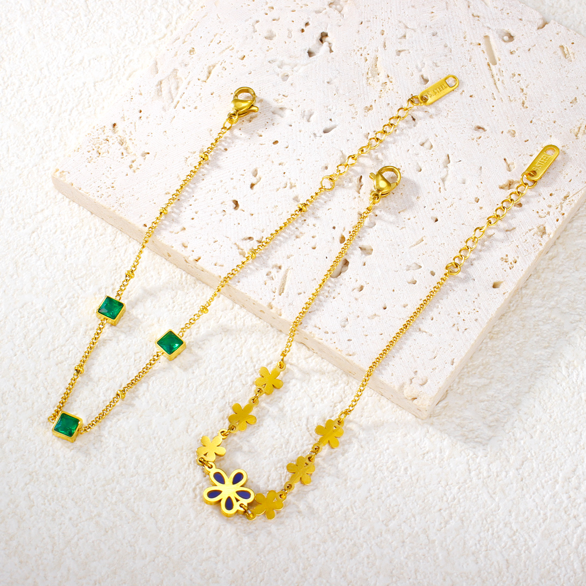 "法式优雅几何不锈钢方形祖母绿锆石吊坠手链"