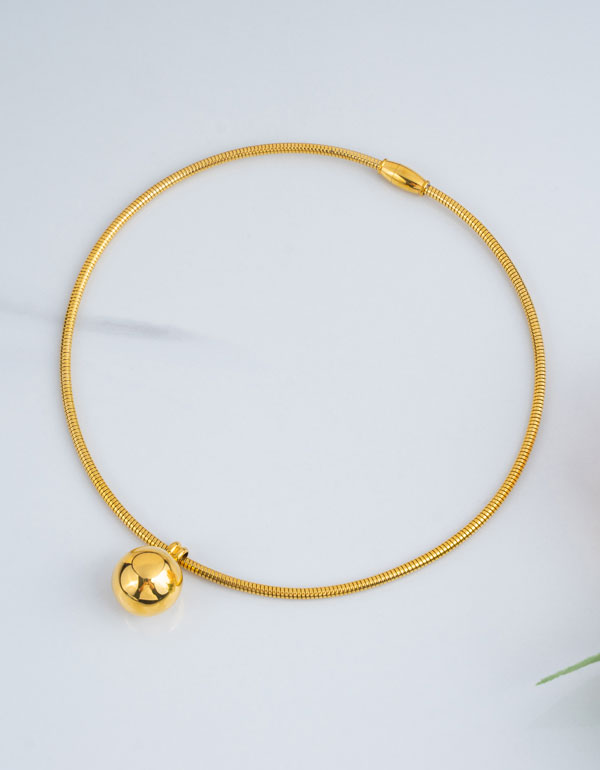 "不锈钢空心钢球项圈镀金"
