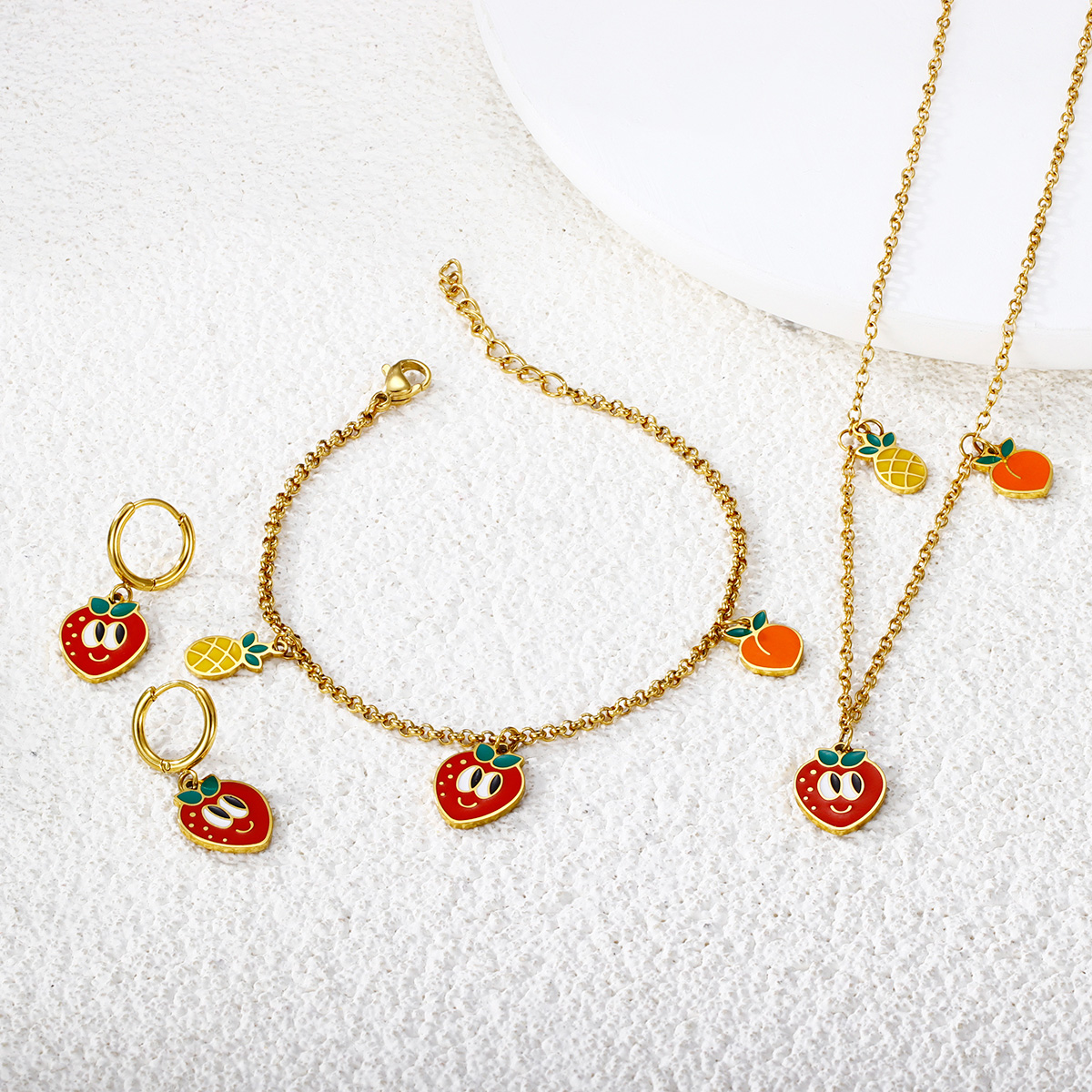 18K镀金草莓耳环项链手链套装