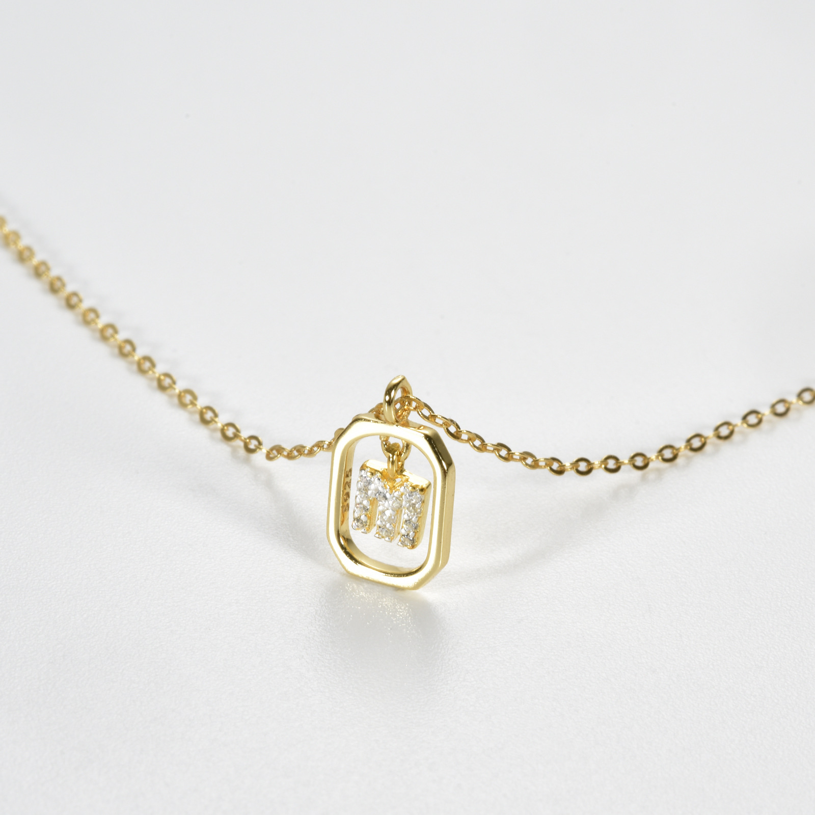 925 纯银长方形锆石字母项链