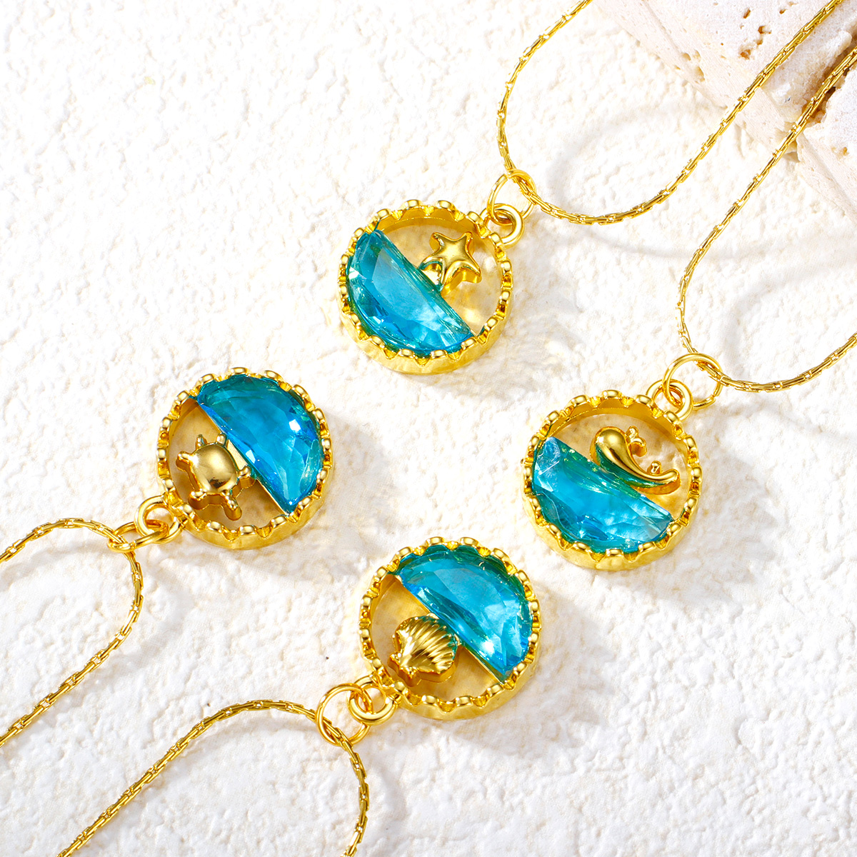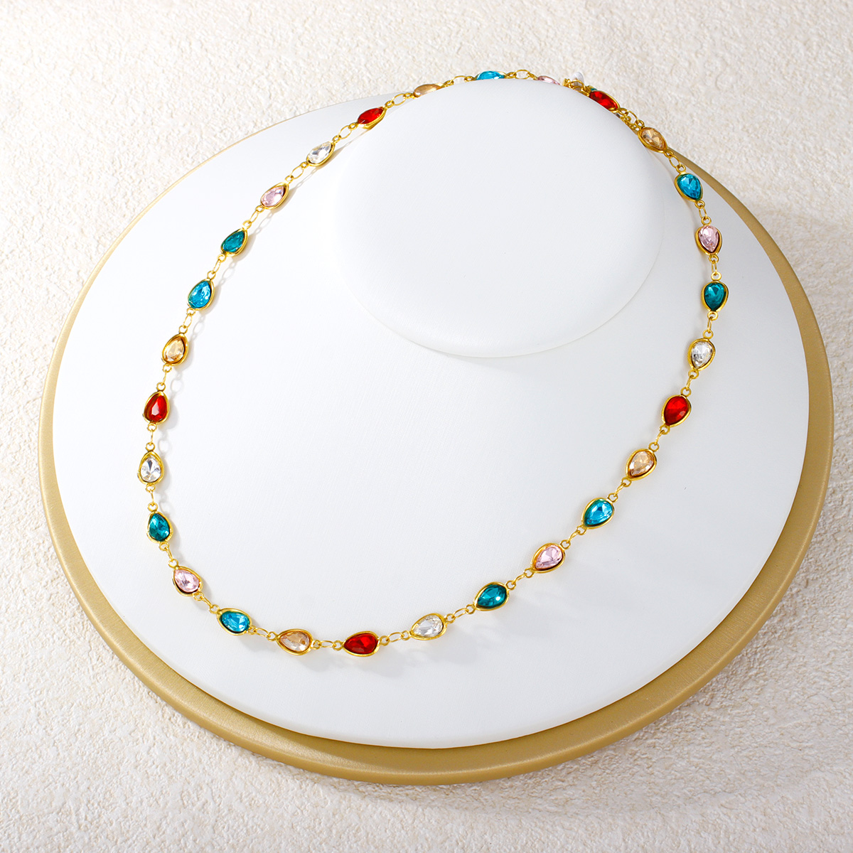 "心形圆形水滴形彩色锆石不锈钢项链"