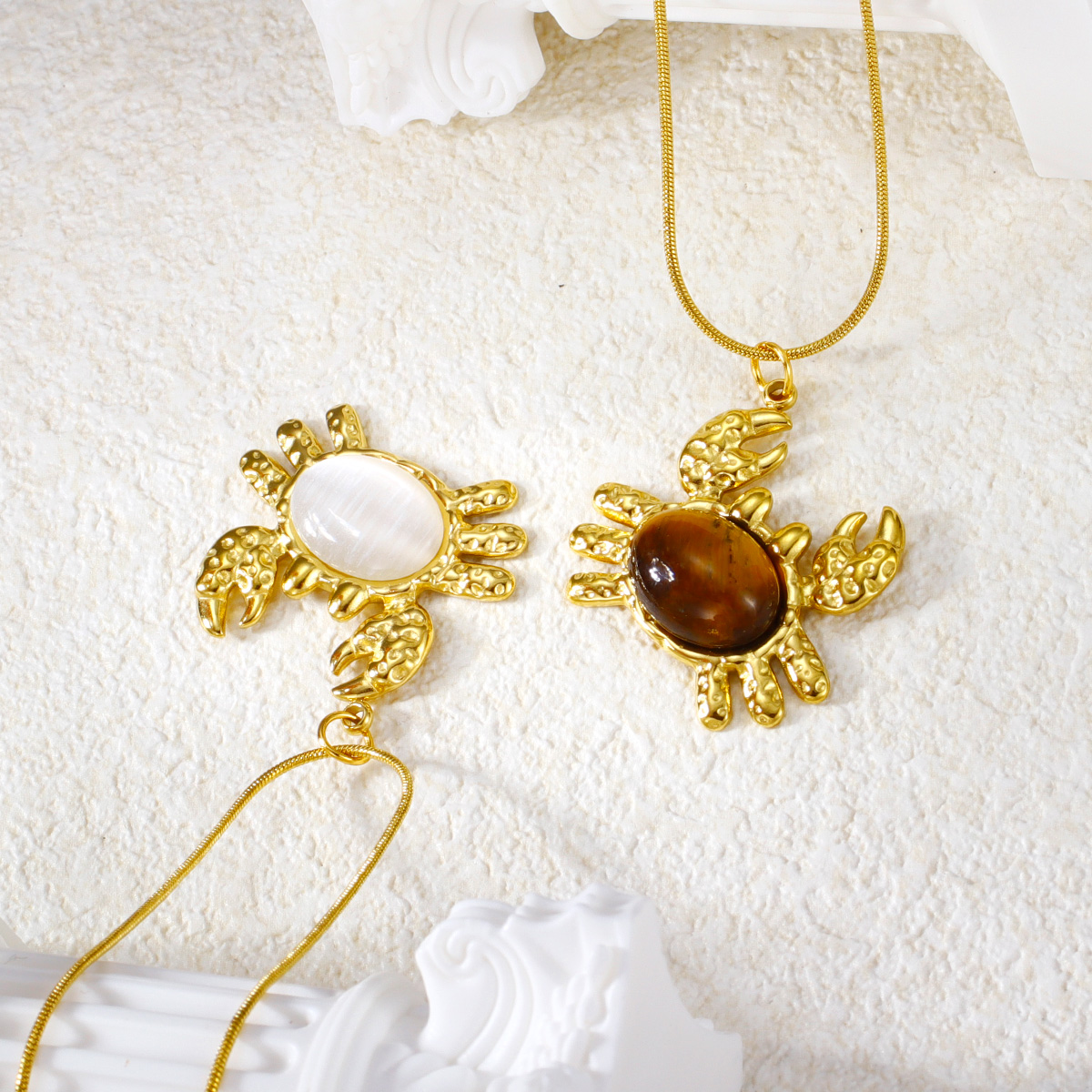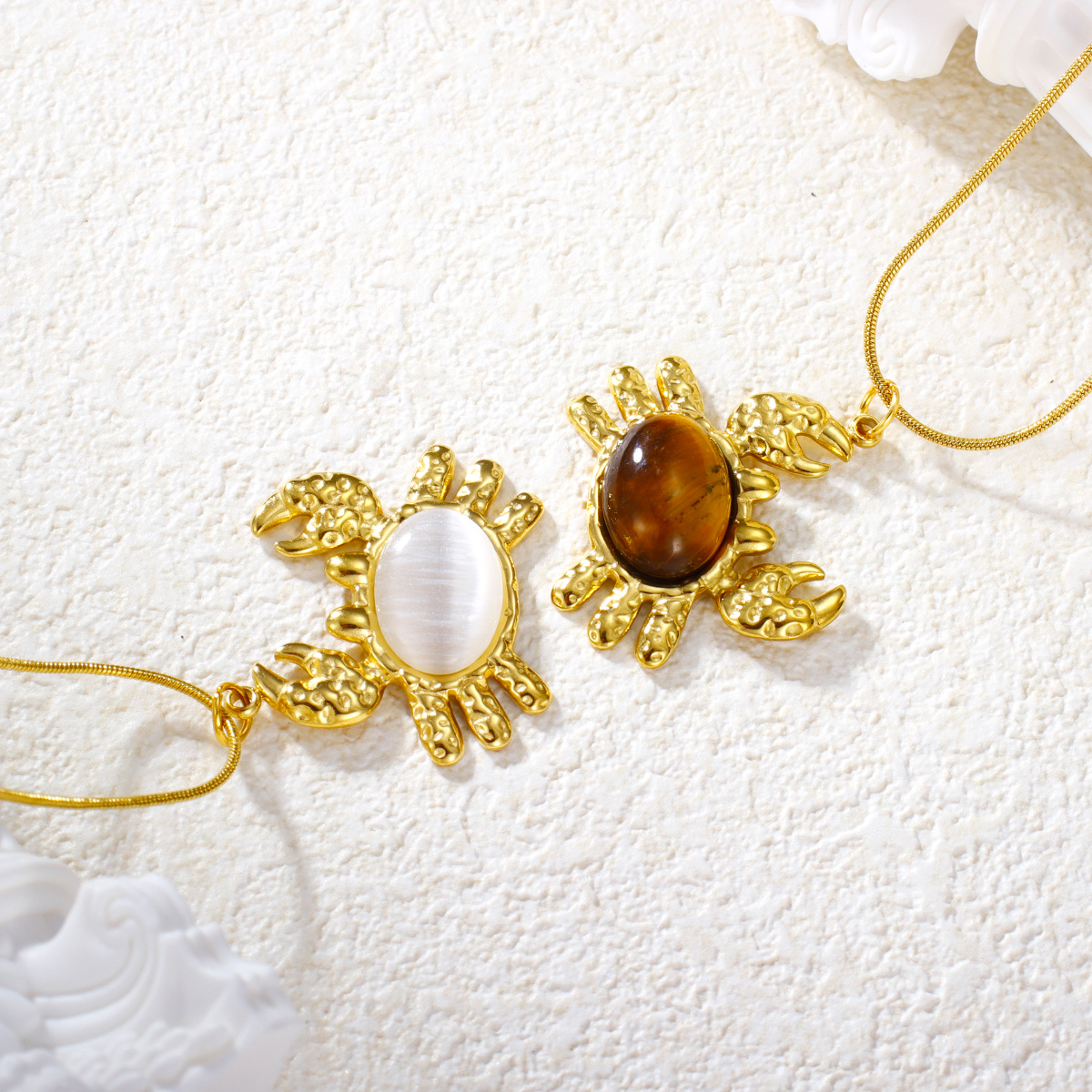"可爱螃蟹猫眼石吊坠项链珠宝"