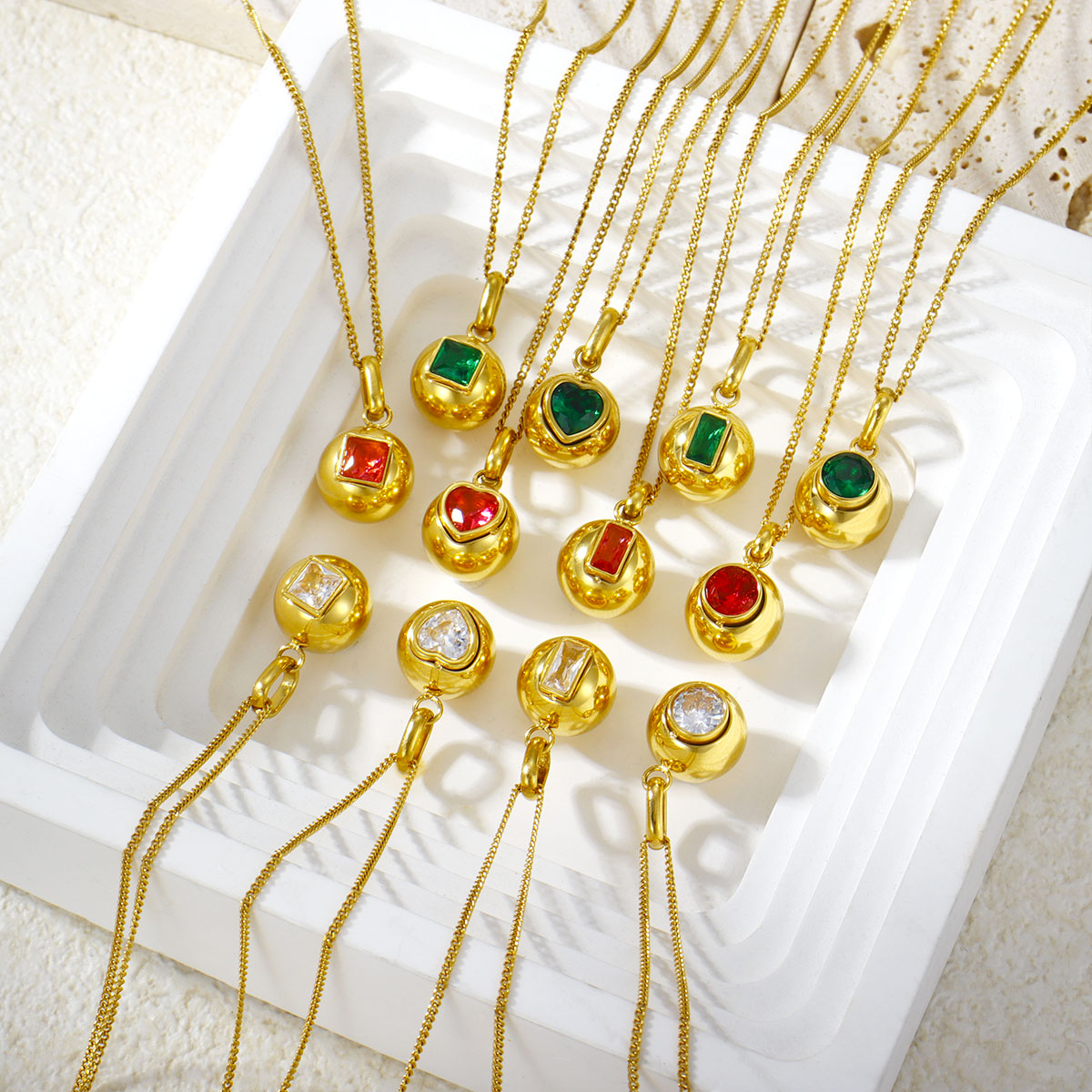 18K镀金不锈钢彩色方形心形锆石圆形球形吊坠项