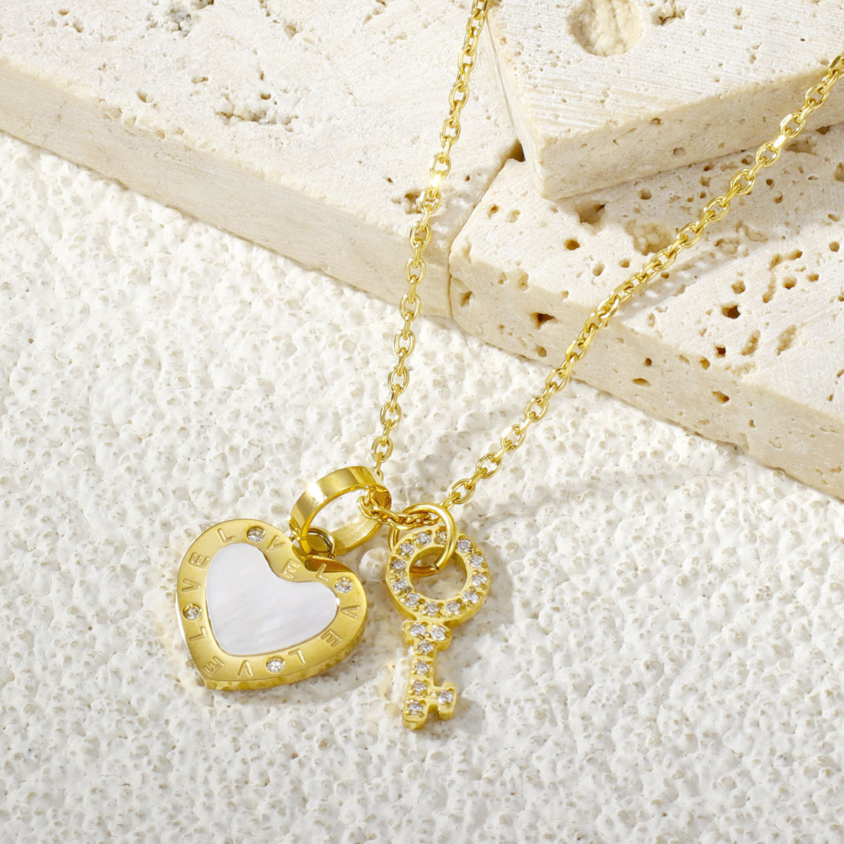 不锈钢锁骨链项链镶满钻石的贝壳钥匙吊坠