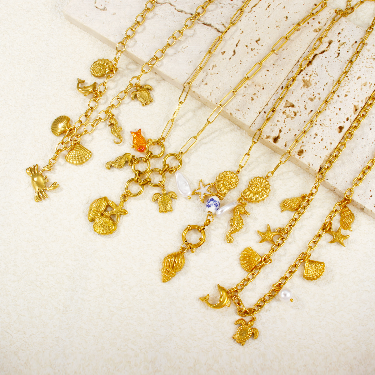 女士复古链条设计不锈钢多元素心形吊坠项链
