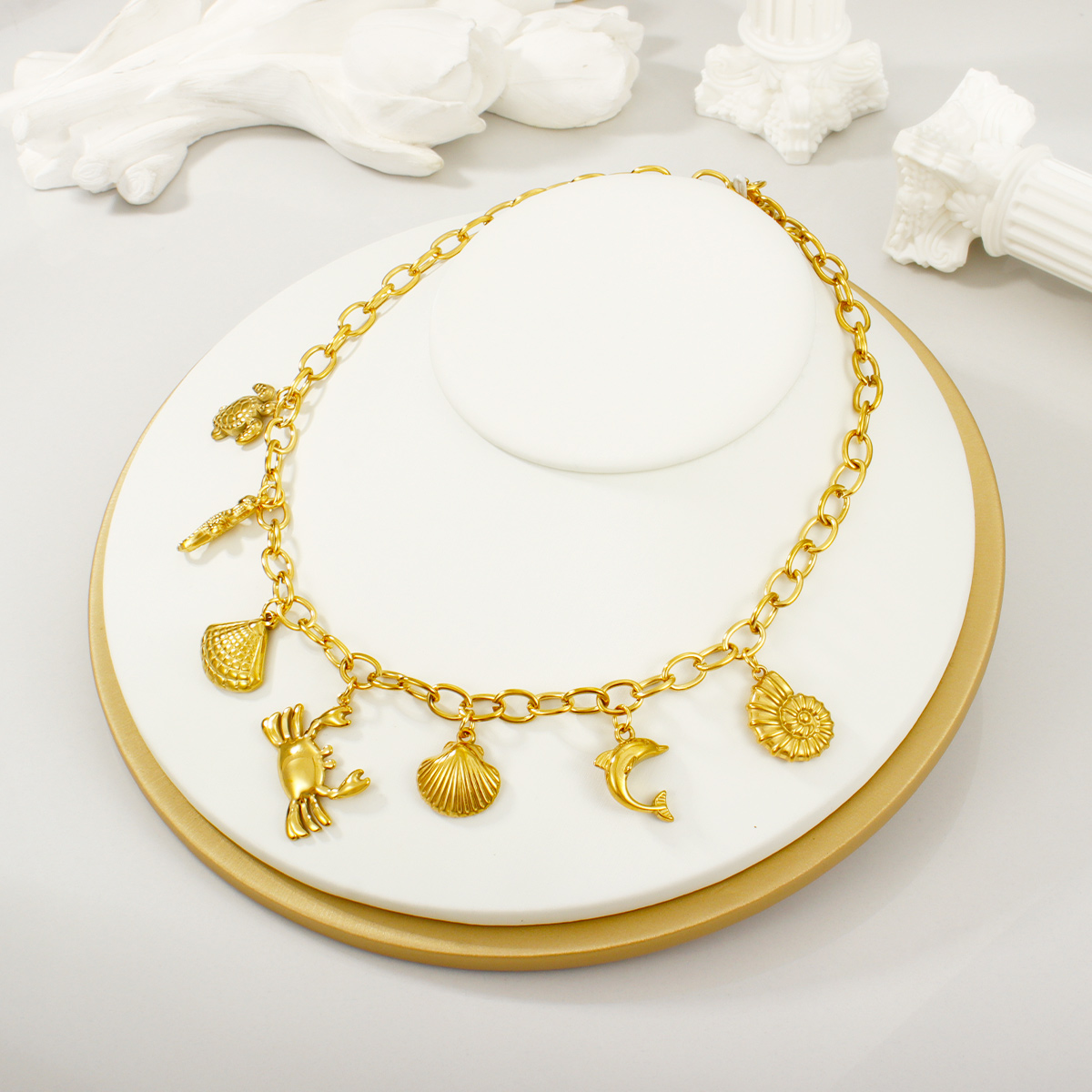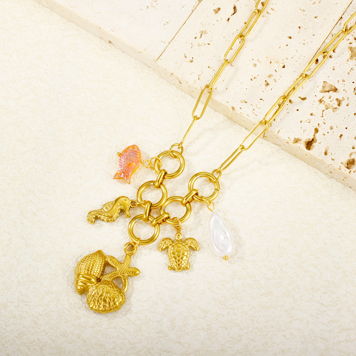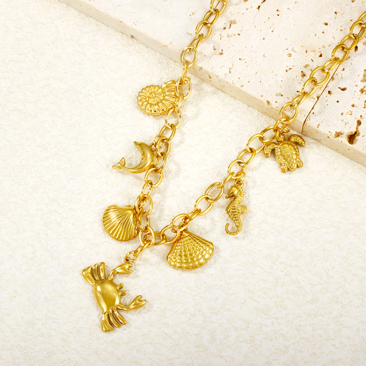 "女士复古链条设计不锈钢多元素心形吊坠项链"