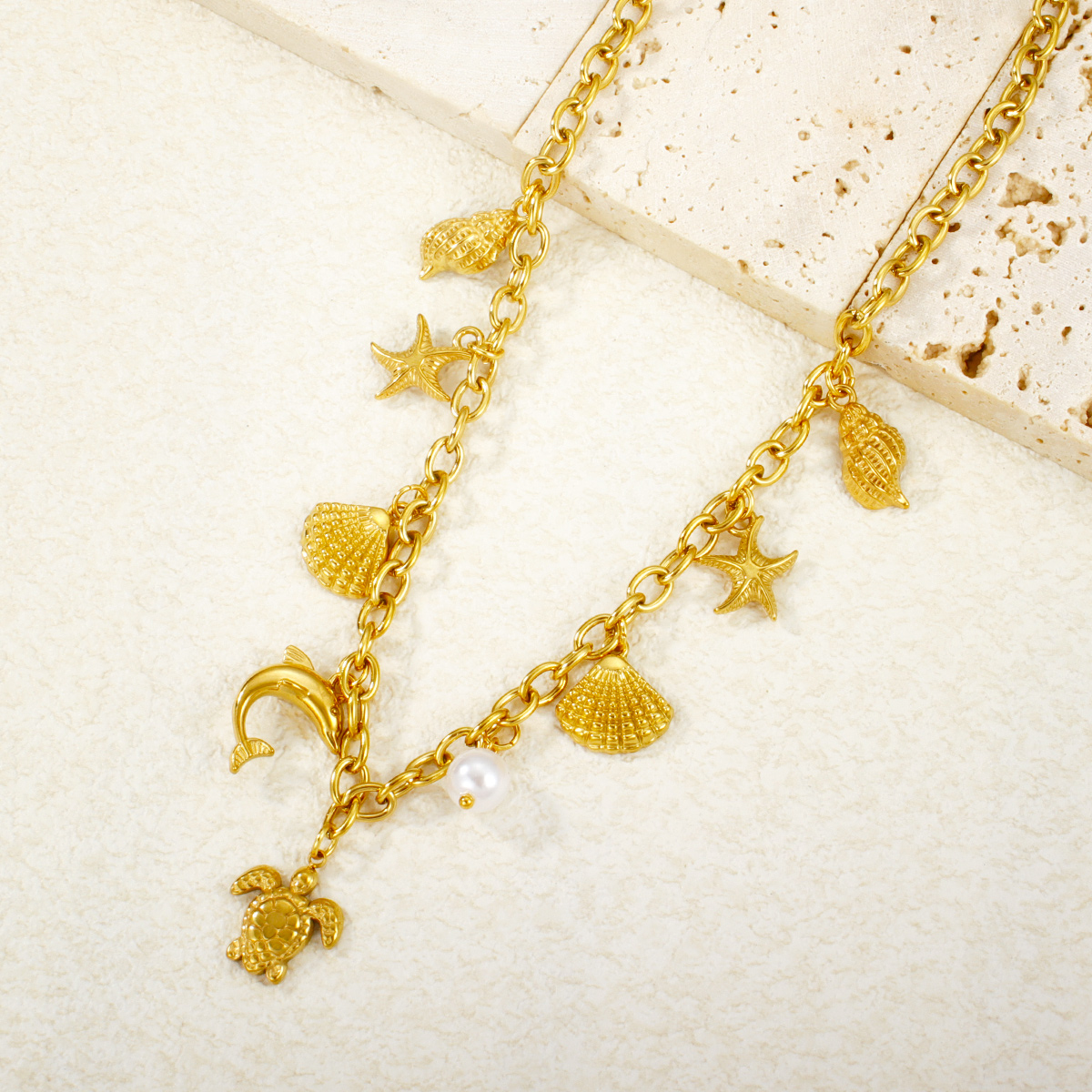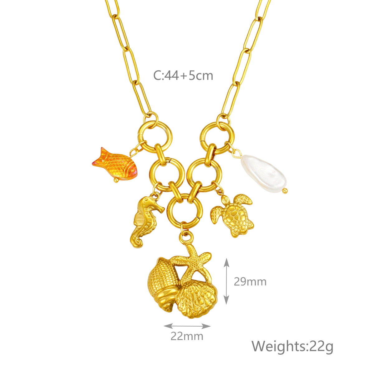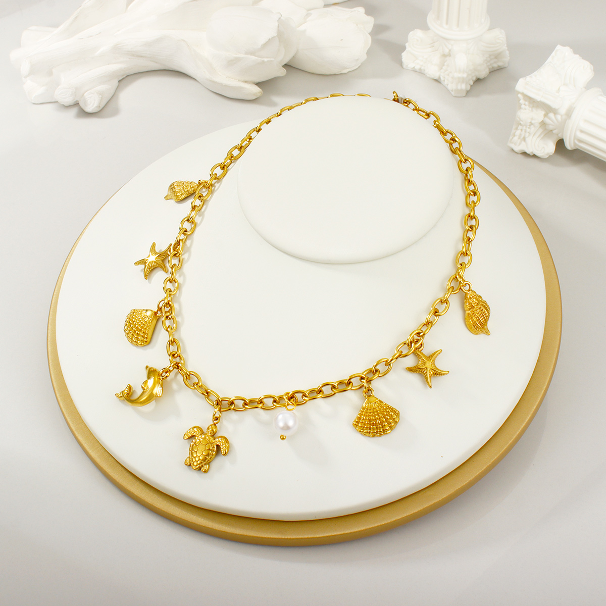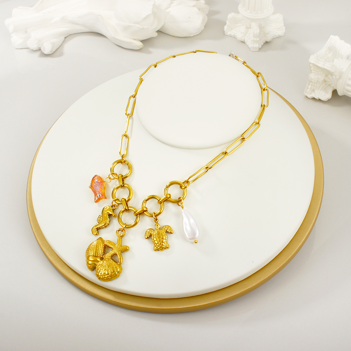 "女士复古链条设计不锈钢多元素心形吊坠项链"