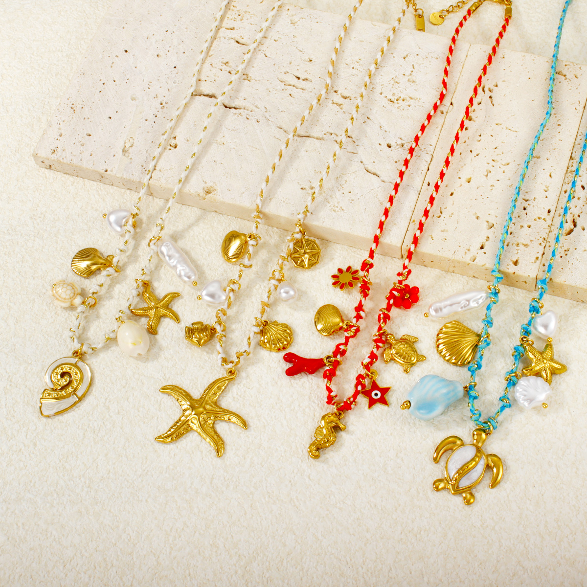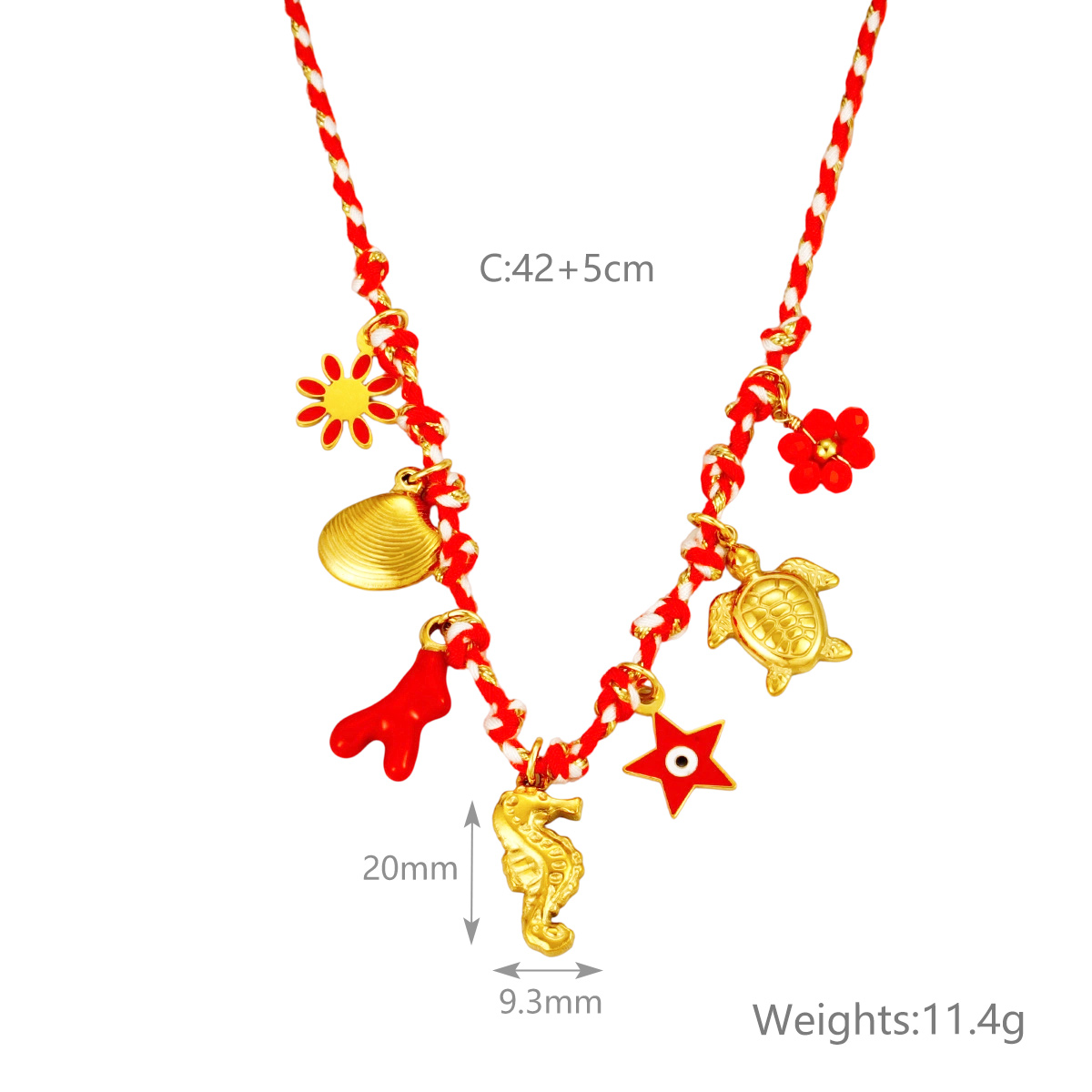 金海星珍珠心形花朵吊坠多色编织项链