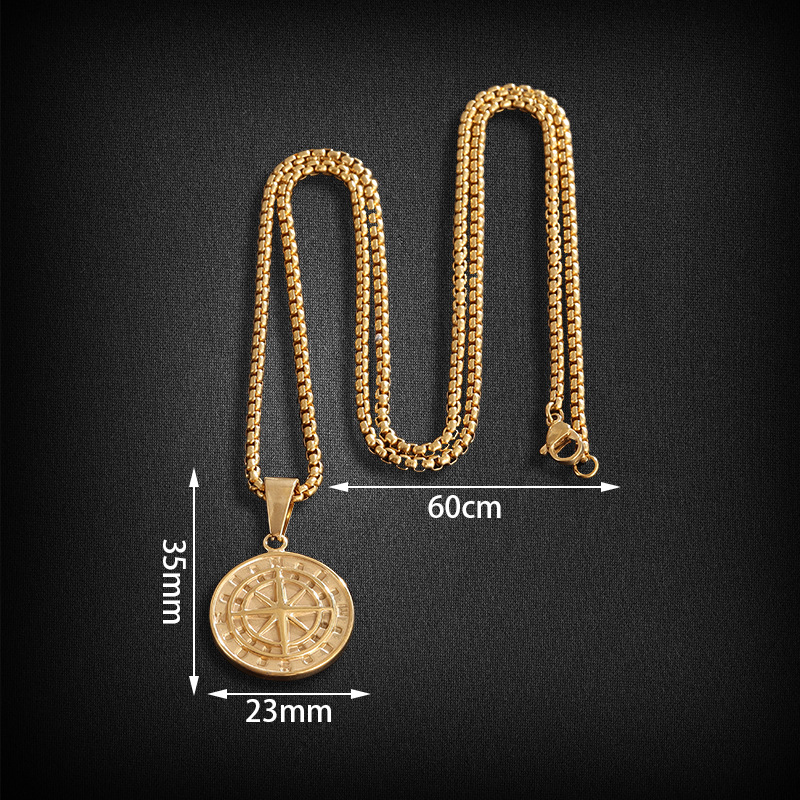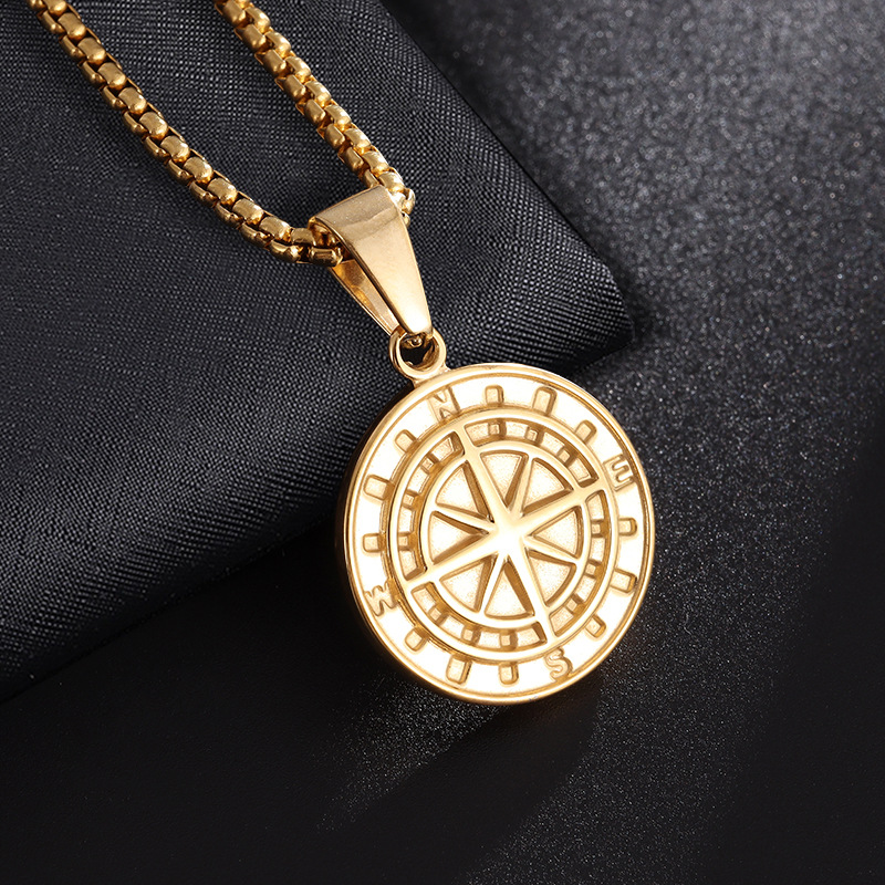 不锈钢男士圆形指南针嘻哈吊坠项链