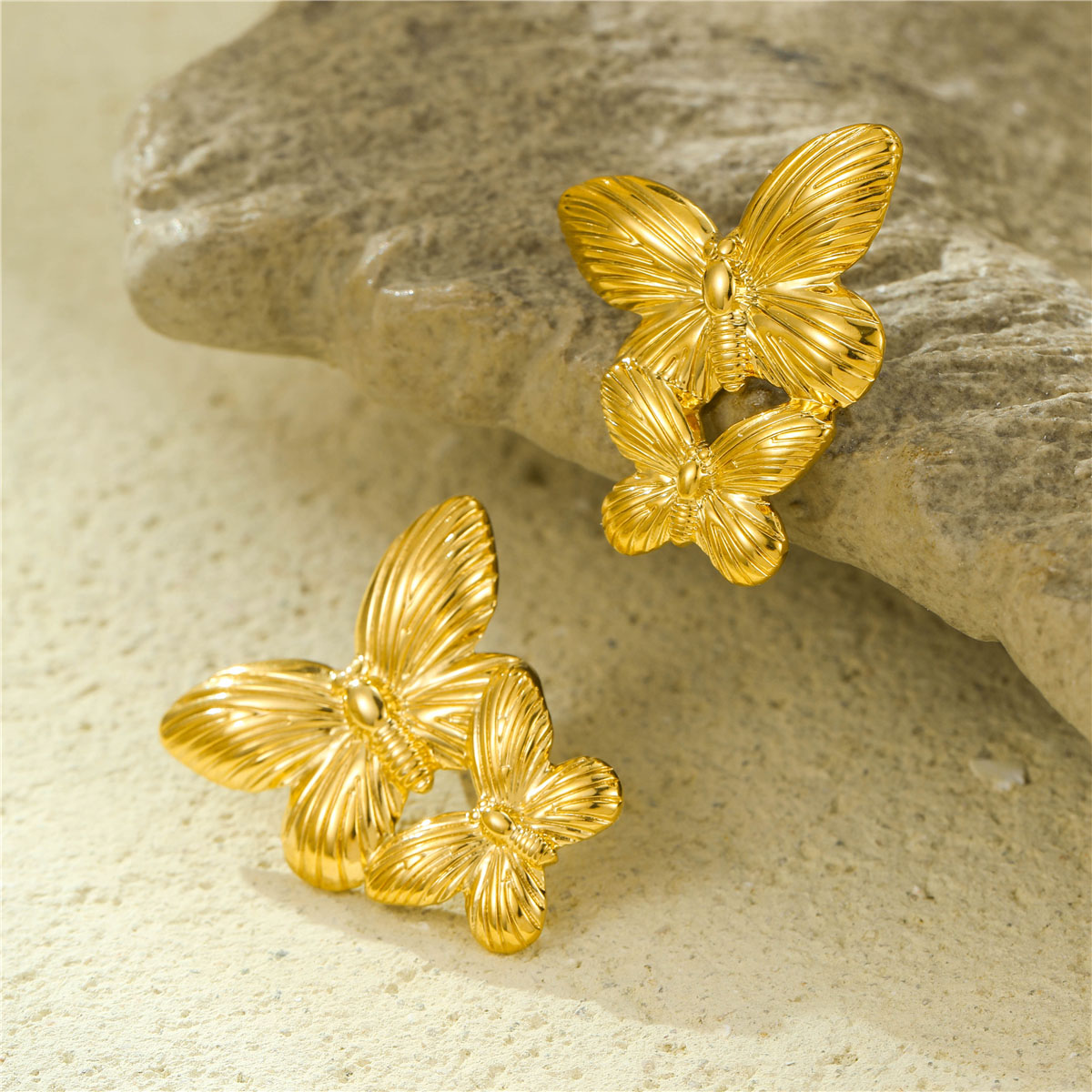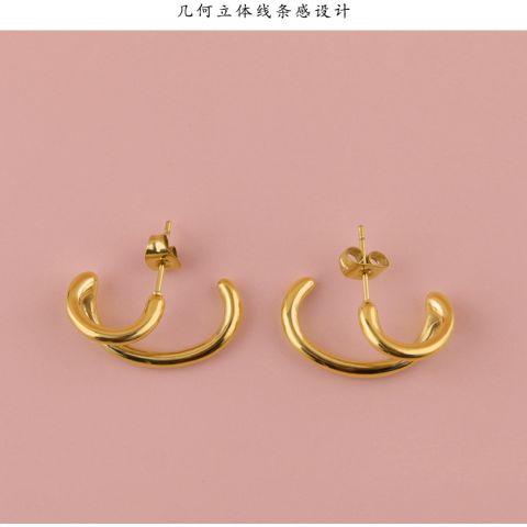 金属不锈钢首饰加工厂金色双面C形耳环
