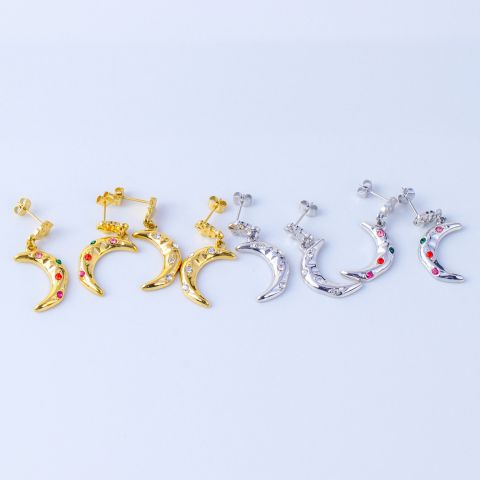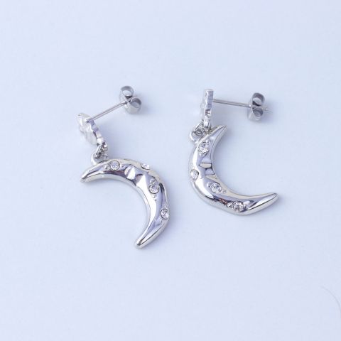 "月亮锆石耳环批发不锈钢纹理耳钉"