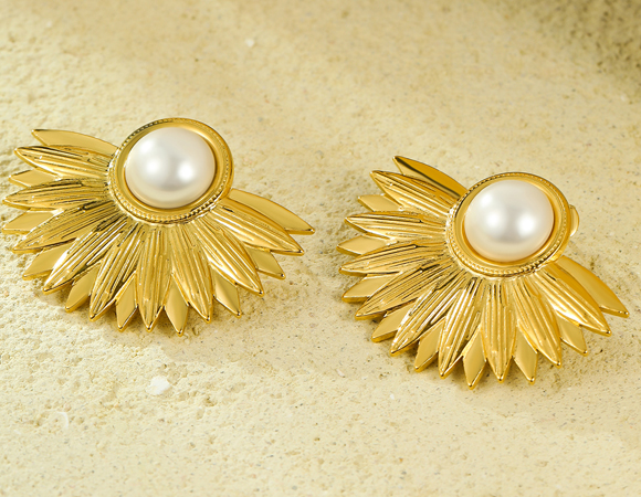 "3D模型半圆镀24K金耳环耳饰耳钉"
