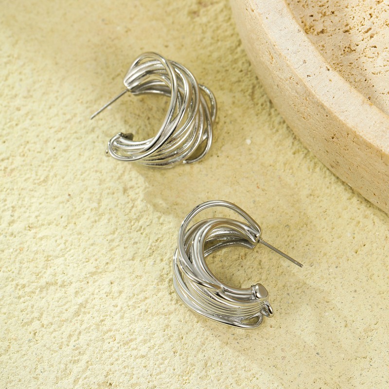 不锈钢耳环代工C形条纹状铸造耳环定制