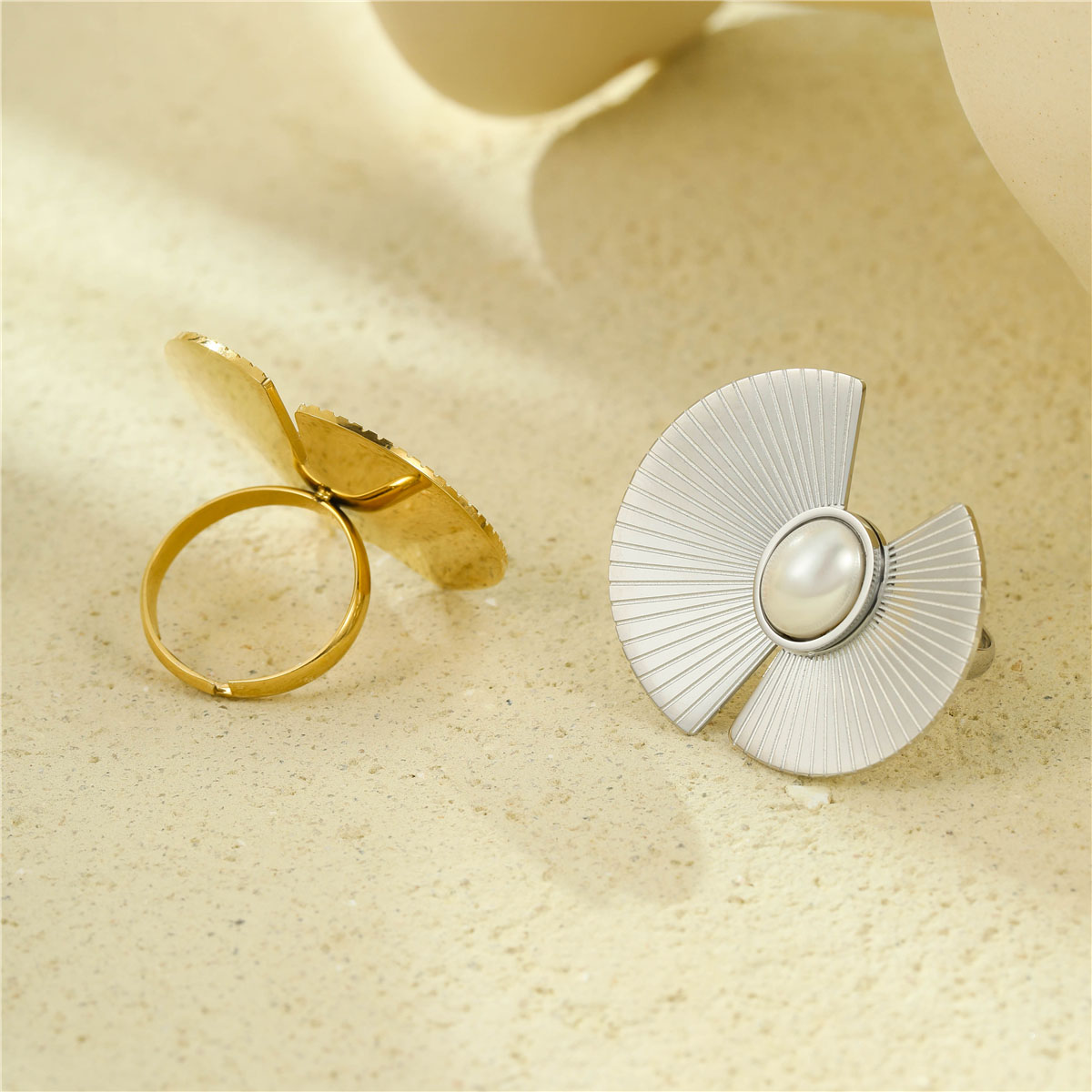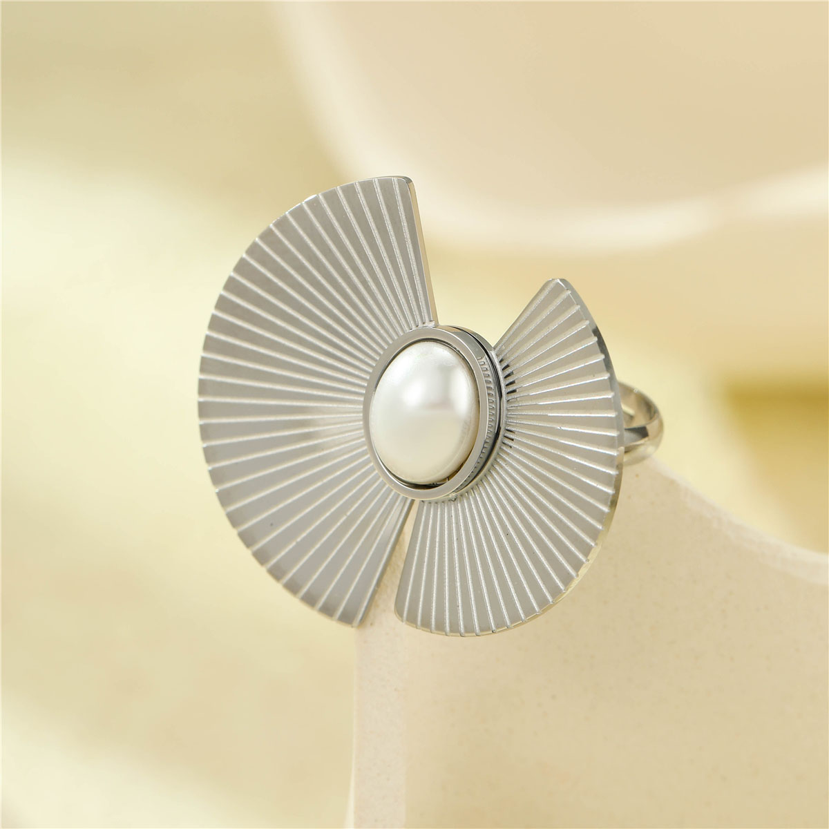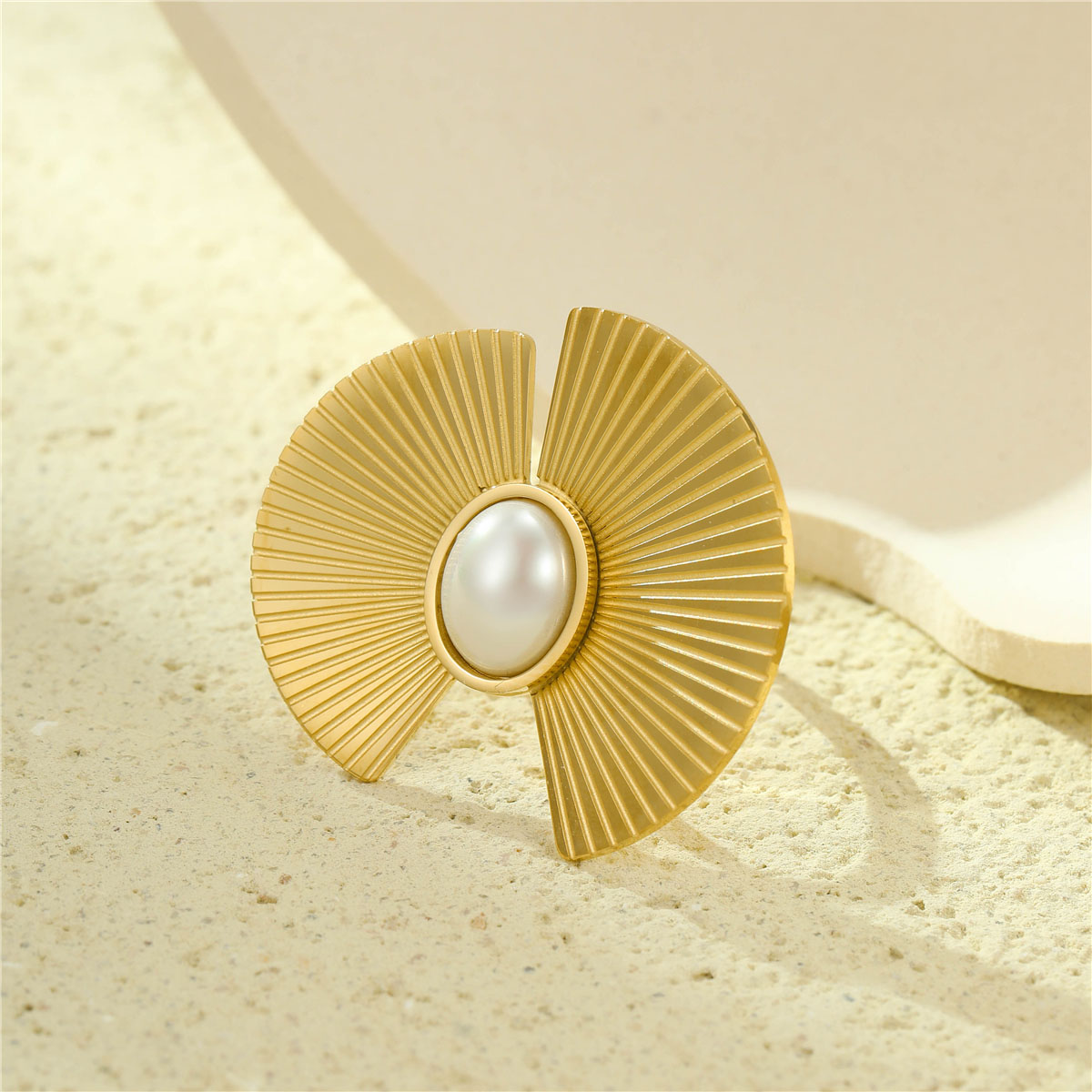 "18K镀金PVD质感轻奢珍珠扇形耳钉"