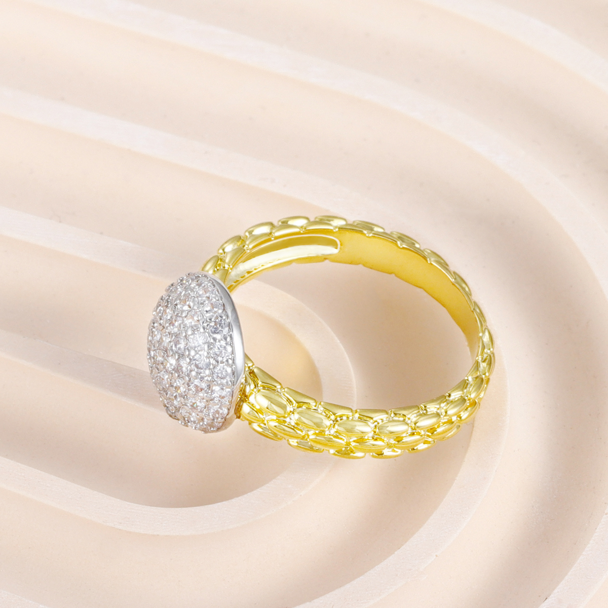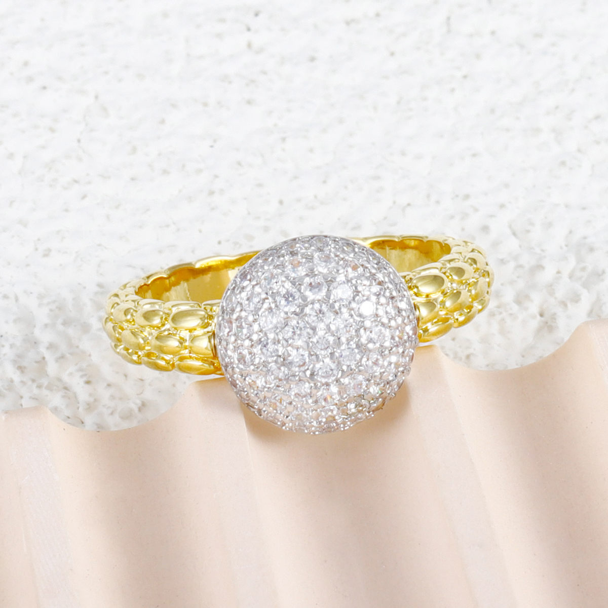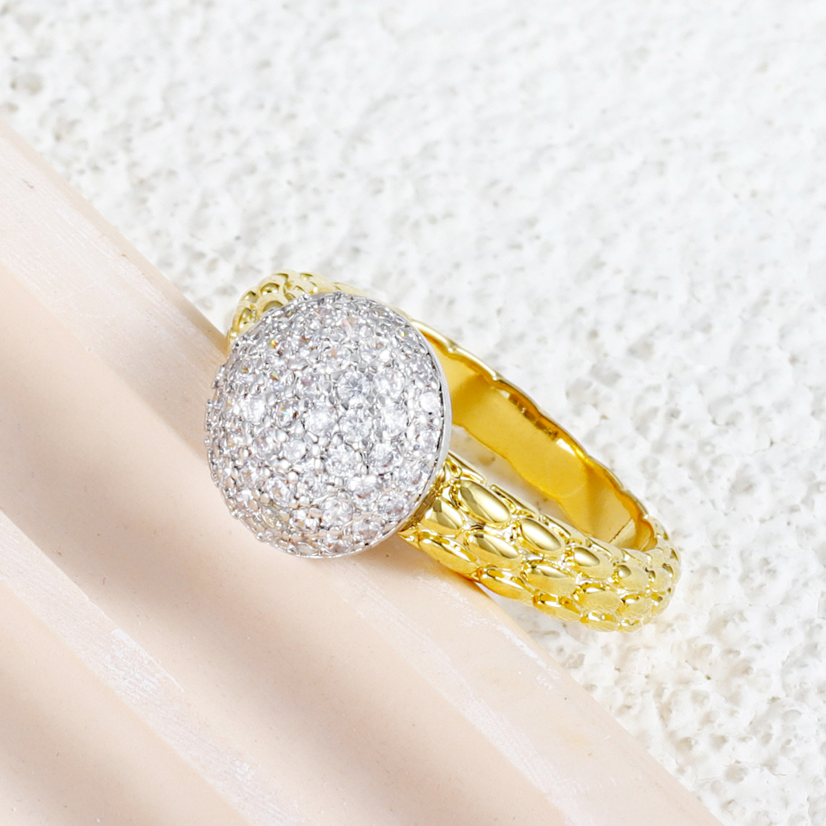 "圆形爪镶锆石莫桑石冰晶簇戒指"