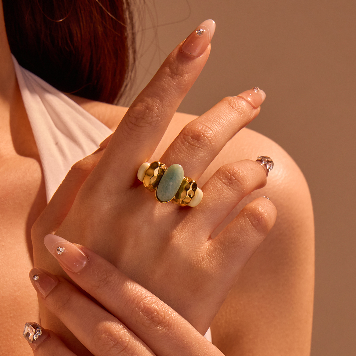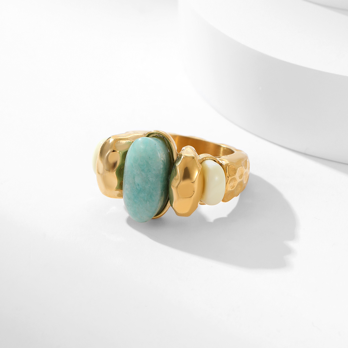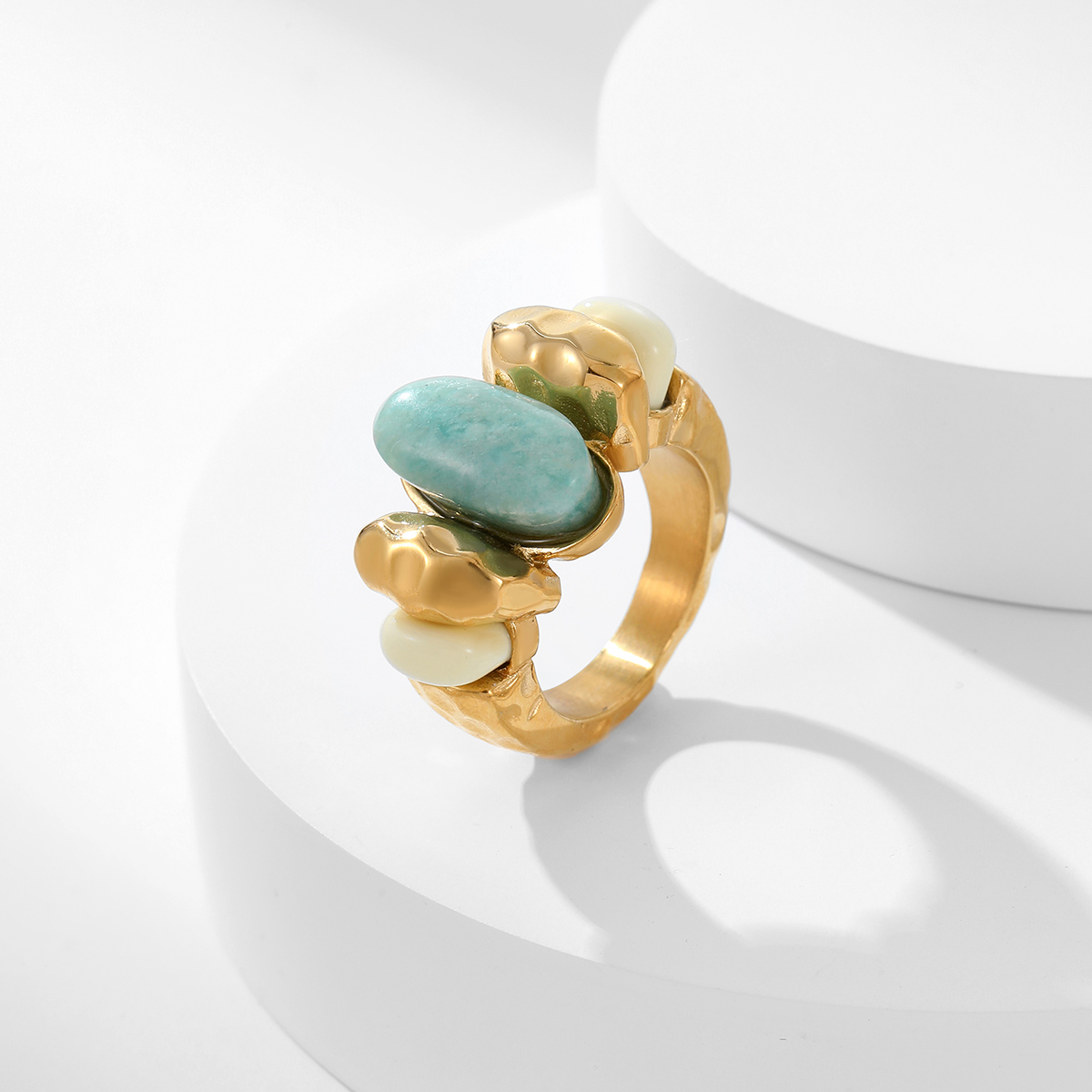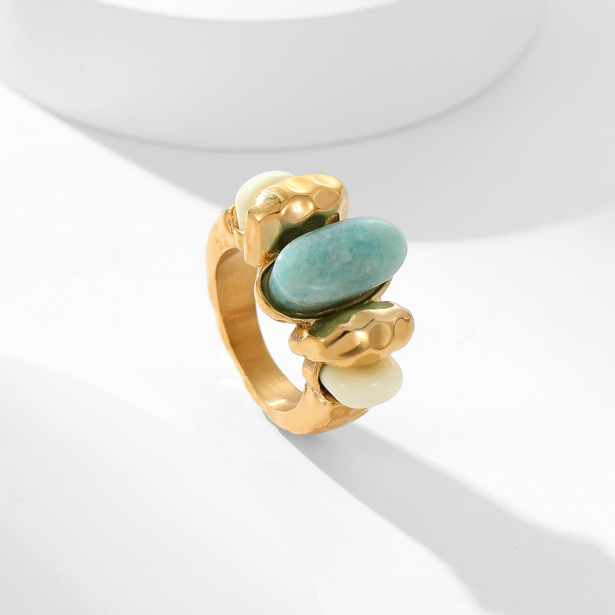 "18k镀金蓝色天然天青石戒指"