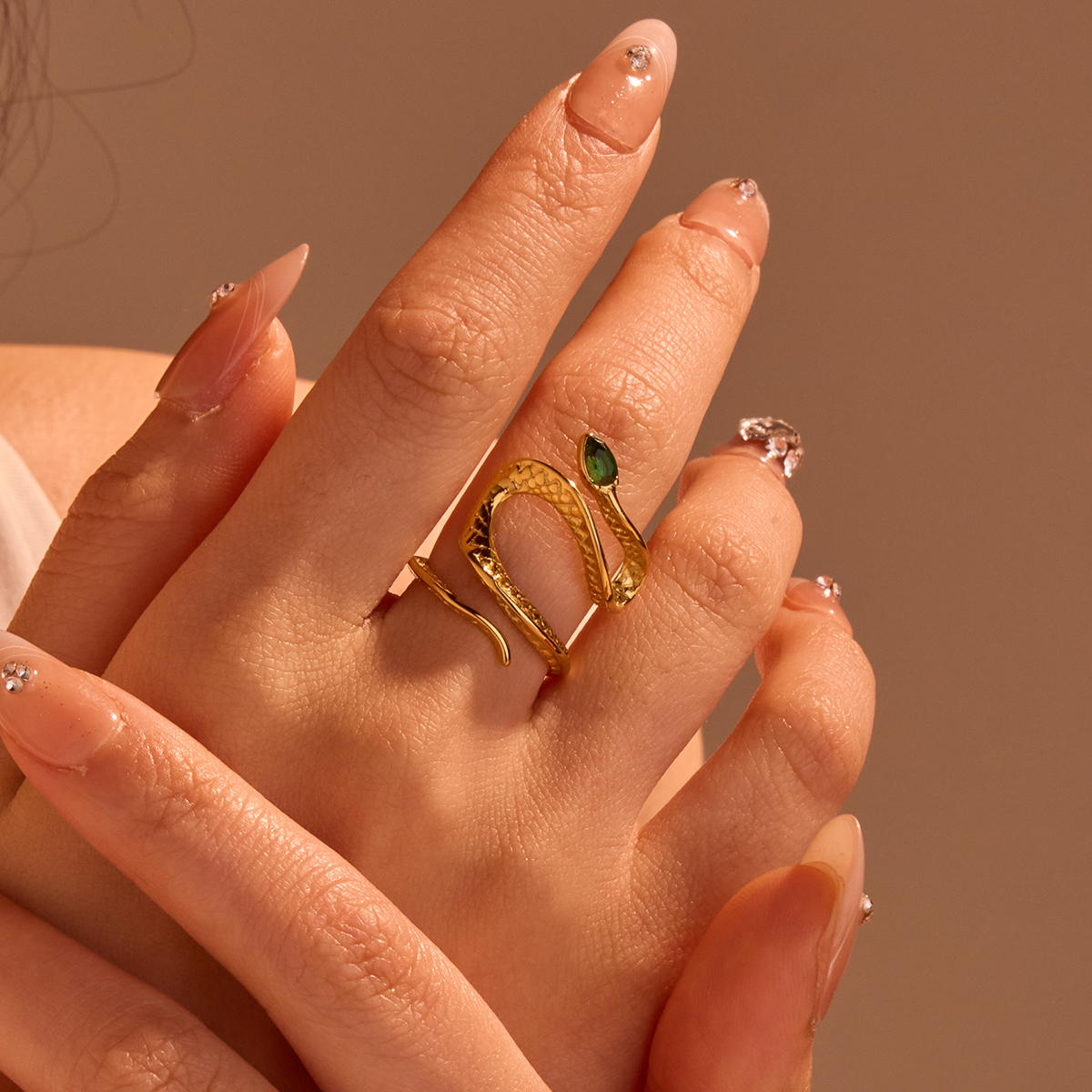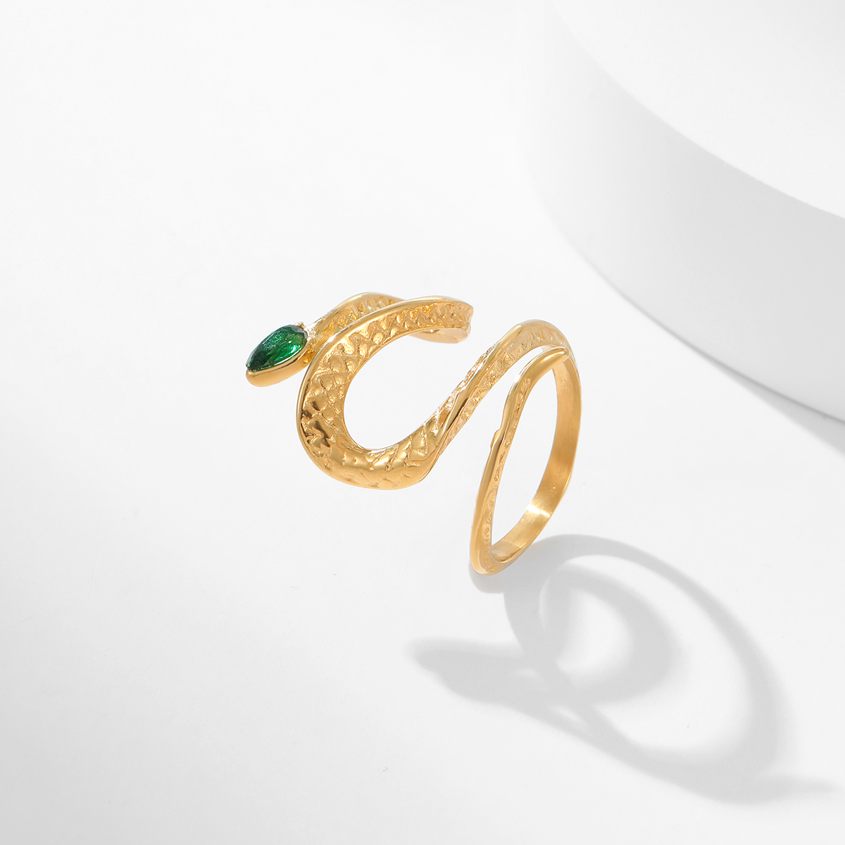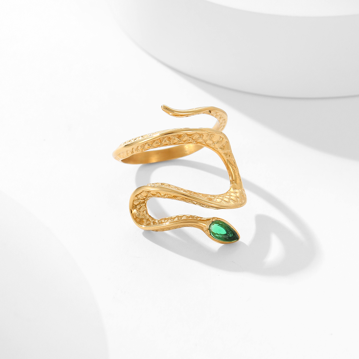 "新款18K镀金蛇形绿锆石戒指 "